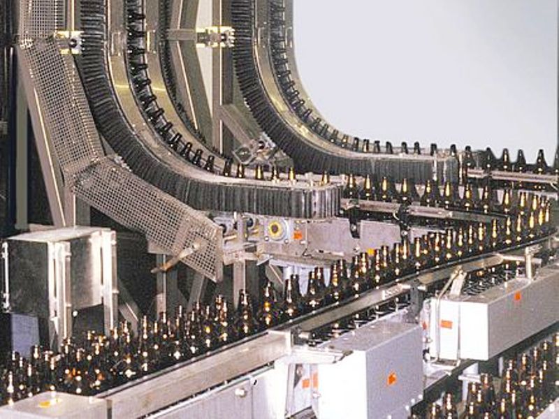 Основным достоинством является малая площадь занимаемая установкой, сохранность хрупкой тары при любом перемещении, возможность создания линии любой конфигурации.