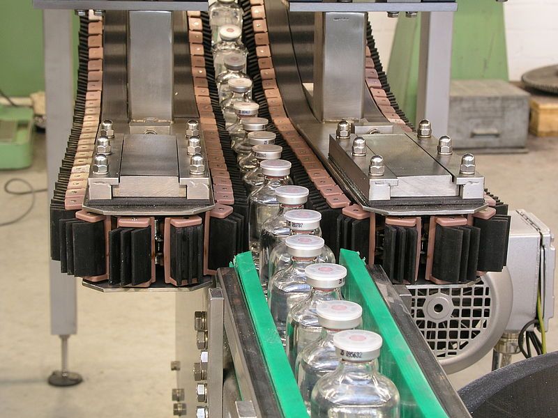 В транспортере используются две параллельные ленты с захватами специального профиля, которые мягко, но надежно фиксируют предмет и перемещают его по заданной траектории. Грипперные транспортеры применяются для транспортировки практически любой фасованной продукции, в том числе стеклянных бутылок, банок, коробок. Учитывая особенности организации линии, транспортеры выпускаются различных конфигураций.