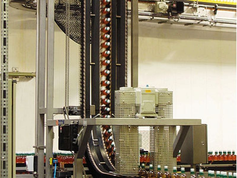 Для организации межуровневого перемещения продукции в составе производственных линий используют грипперные транспортеры (элеваторы).