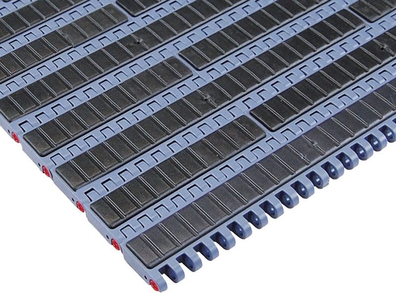 Модульная лента имеет наборную конструкцию, состоит из пластиковых звеньев, соединенных между собой, благодаря этому такая лента может быть любой длины и ширины и обладает отличной гибкостью. В зависимости от типа перемещаемого груза в модульных конвейерах используются гладкие, рифленые, с закрытой или открытой поверхностью, с поперечными перегородками и боковыми лепестками, с противоскользящим покрытием, поворотные модульные ленты
