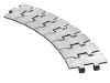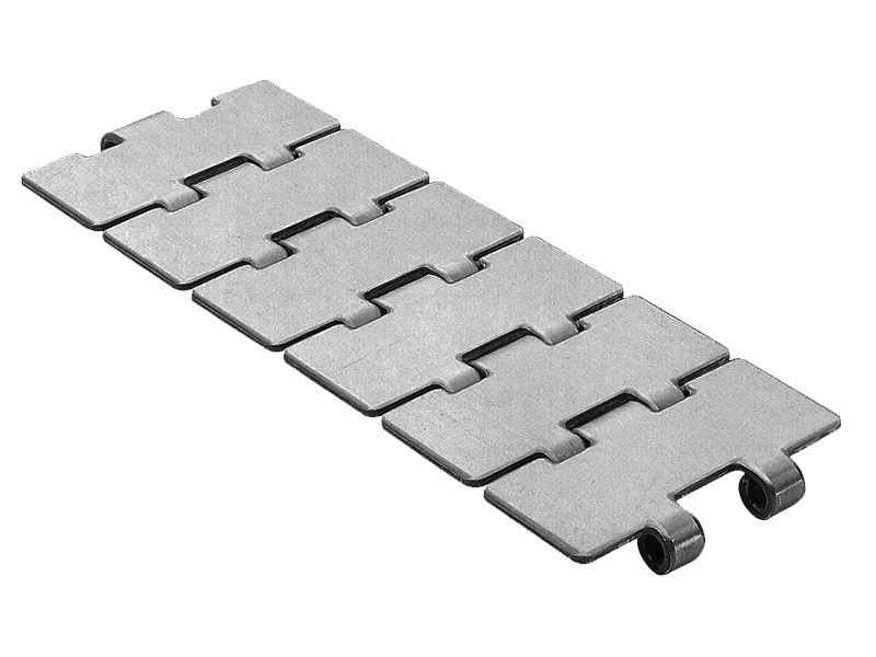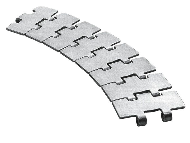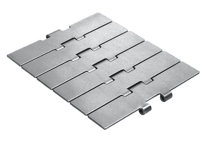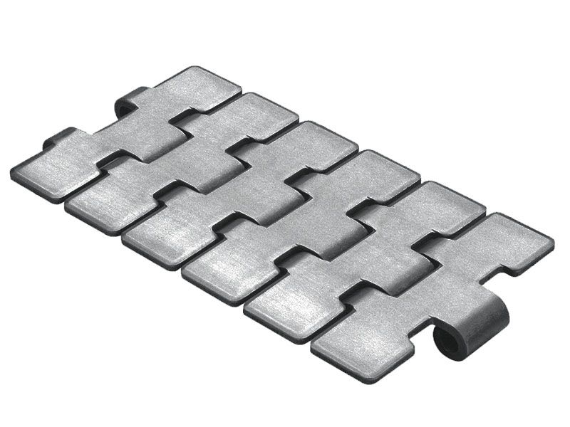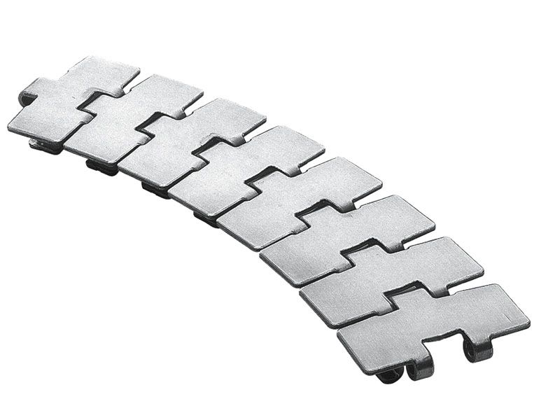 В зависимости от условий эксплуатации конвейера (транспортера), характера груза, нагрузки пластинчатые цепи могут быть из нержавеющей стали, сверхпрочной нержавеющей стали или специальной ферритной нержавеющей стали с обработкой поверхности для высокоскоростного скольжения. Если имеются поворотные участки, тогда применяют пластинчатые поворотные цепи. В случае же прямых конвейеров (транспортеров) применяют пластинчатые цепи прямолинейного движения.Для транспортировки продукции на наклонных конвейерах и используются плоские транспортерные цепи со специальными резиновыми накладками для увеличения коэффициента трения между транспортируемой продукцией и транспортером. (допустимый угол наклона такого транспортера в среднем до 25 градусов).