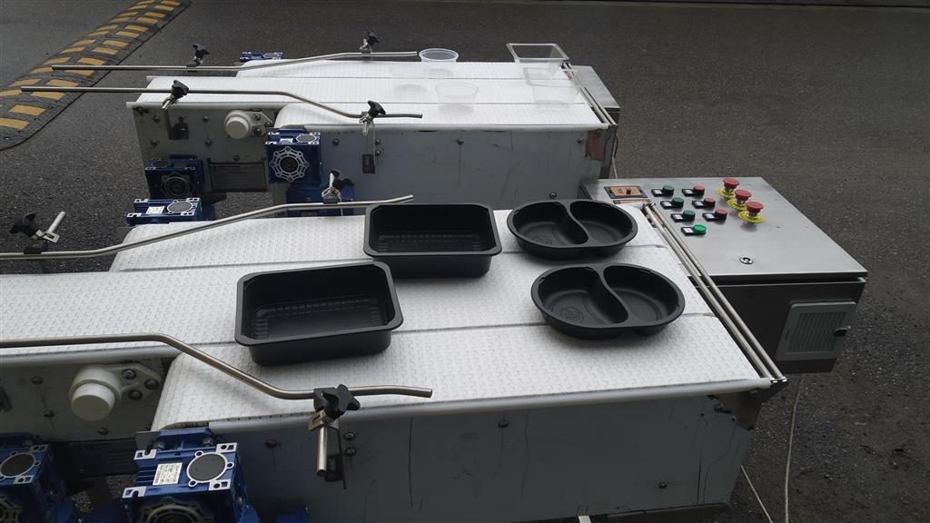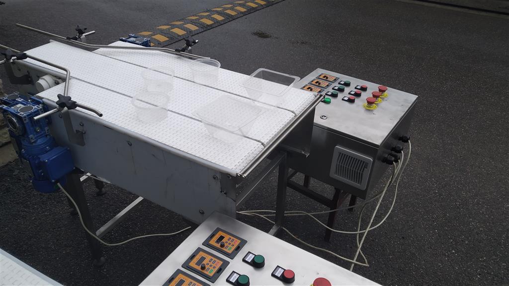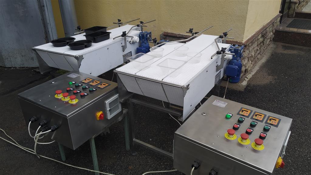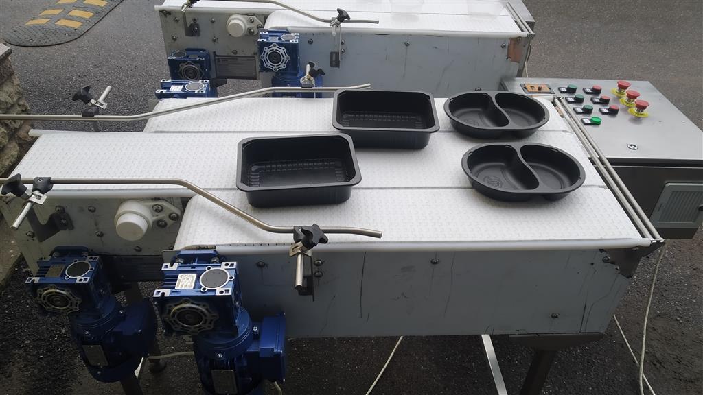 Описание проекта: Крупному производителю пищевой промышленности в России, изготовлены 2 3-х рядных конвейера с модульной лентой. Конвейеры служат для выстраивания упаковок с 3-х и 2-х рядов в один ряд. Конвейеры состоят из 3-х рядов модульной ленты, которые с помощью шкафа управления с частотными преобразователями, имеют возможность менять скорость каждого ряда.Конвейеры изготовлены из нержавеющей стали, пластиковая модульная лента шириной 150 и 200 мм, мотор-редуктор 6 шт. (Италия), 2 шкафа управления с 3-мя частотными преобразователями.