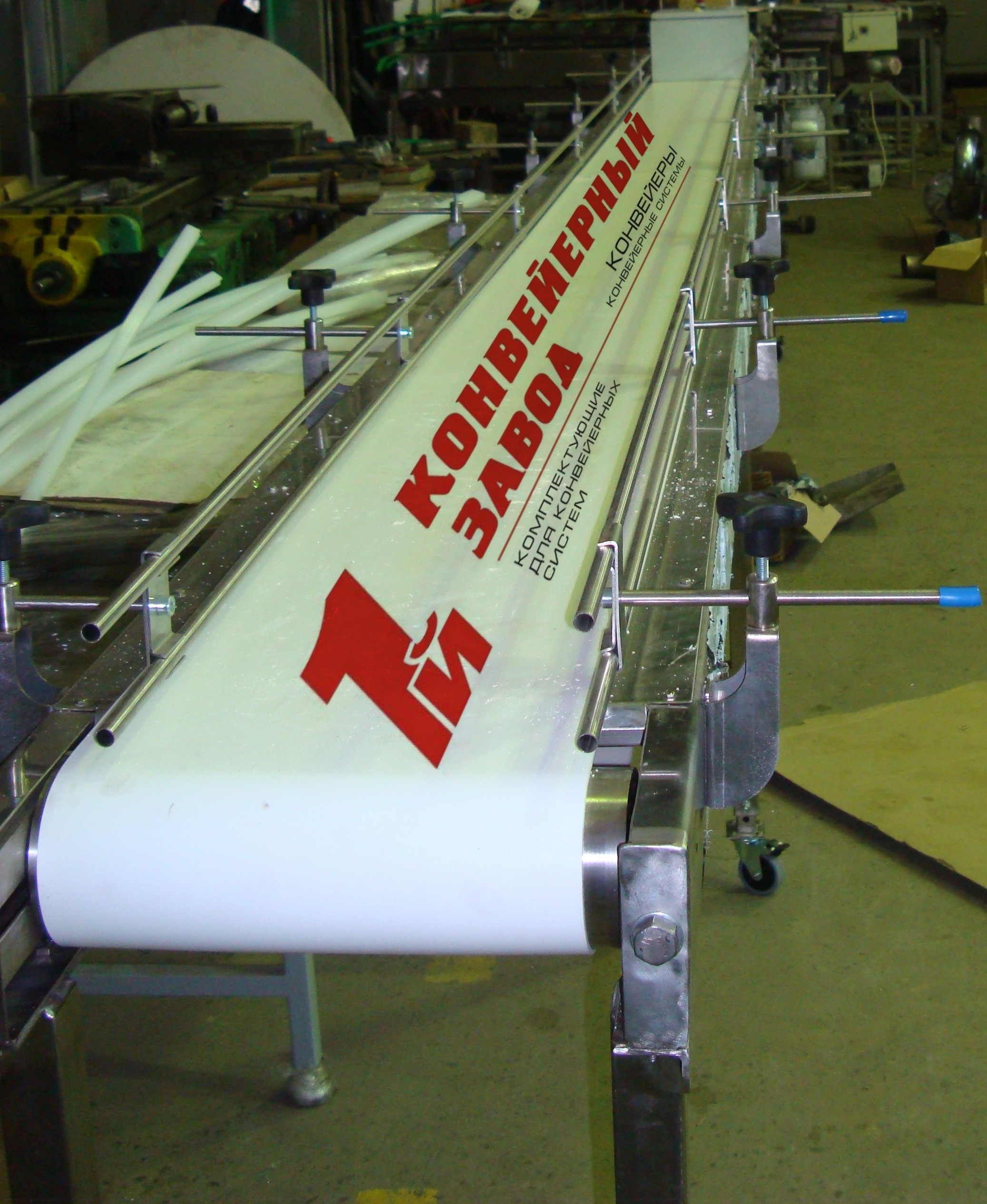 Описание проекта: Изготовлен конвейер для перемещения упакованных пищевых продуктов.Длина конвейера 6 метров, ширина пищевой ленты ПВХ 300мм,материал конструкции конвейера и регулируемых кронштейнов ограждения - нержавеющая сталь,опоры конвейера - колесики со стопорным механизмом,привод 0,37 кВт (Италия), регулировка скорости - частотный преобразователь в шкафу управления.