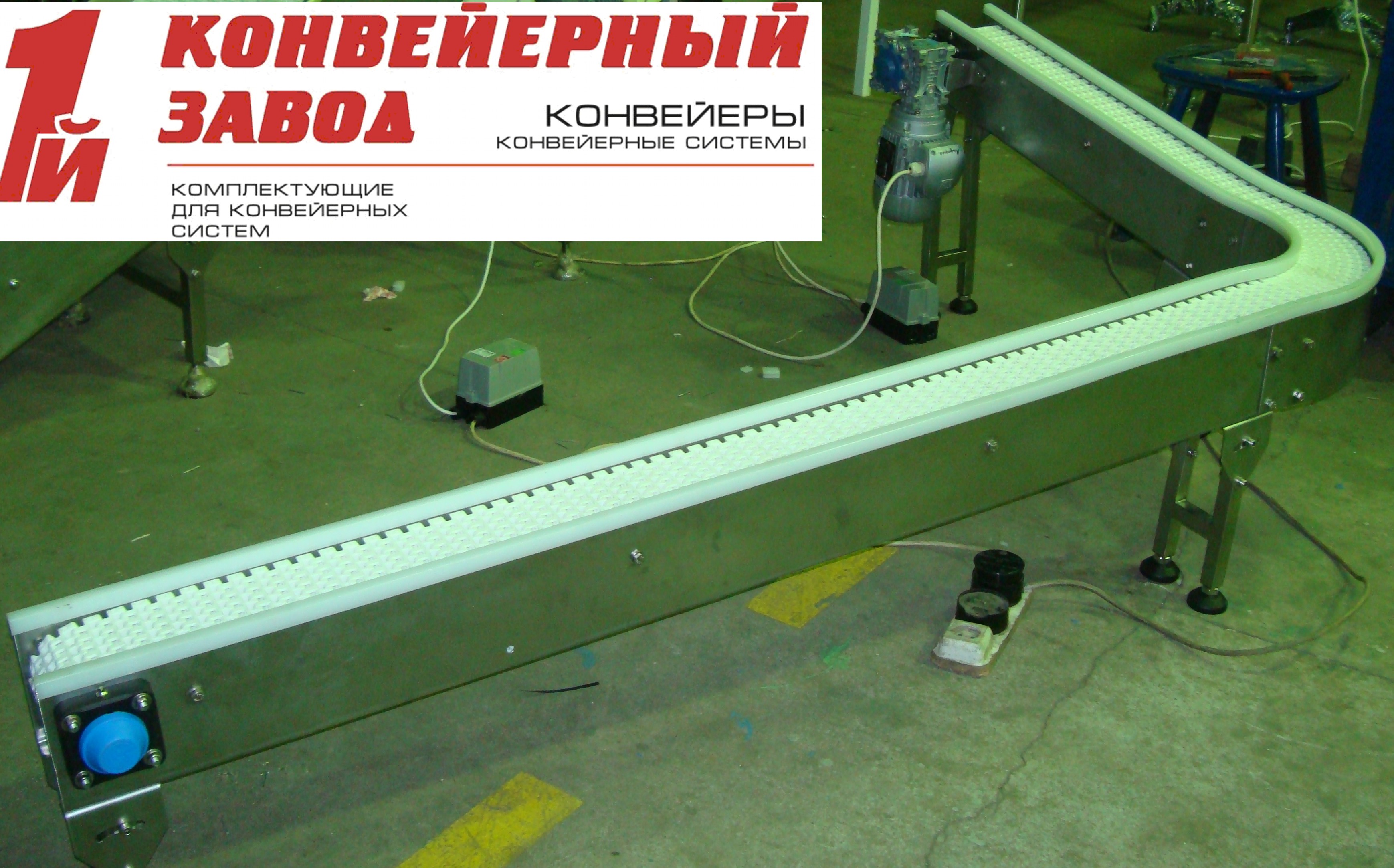 Описание проекта: Изготовлен конвейер для перемещения упаковок с сыром. Покупателем конвейера является пищевое производство, где по технологии необходимо переместить упаковку с сыром от одного оборудования до другого по сложной траектории, т.к. очень мало свободного места. Конвейер изготовлен из пищевой нержавеющей стали, поворотная модульная лента из полипропилена шириной 117 мм, приводом 0,37 кВт (Италия), и высотой от 400 до 630мм