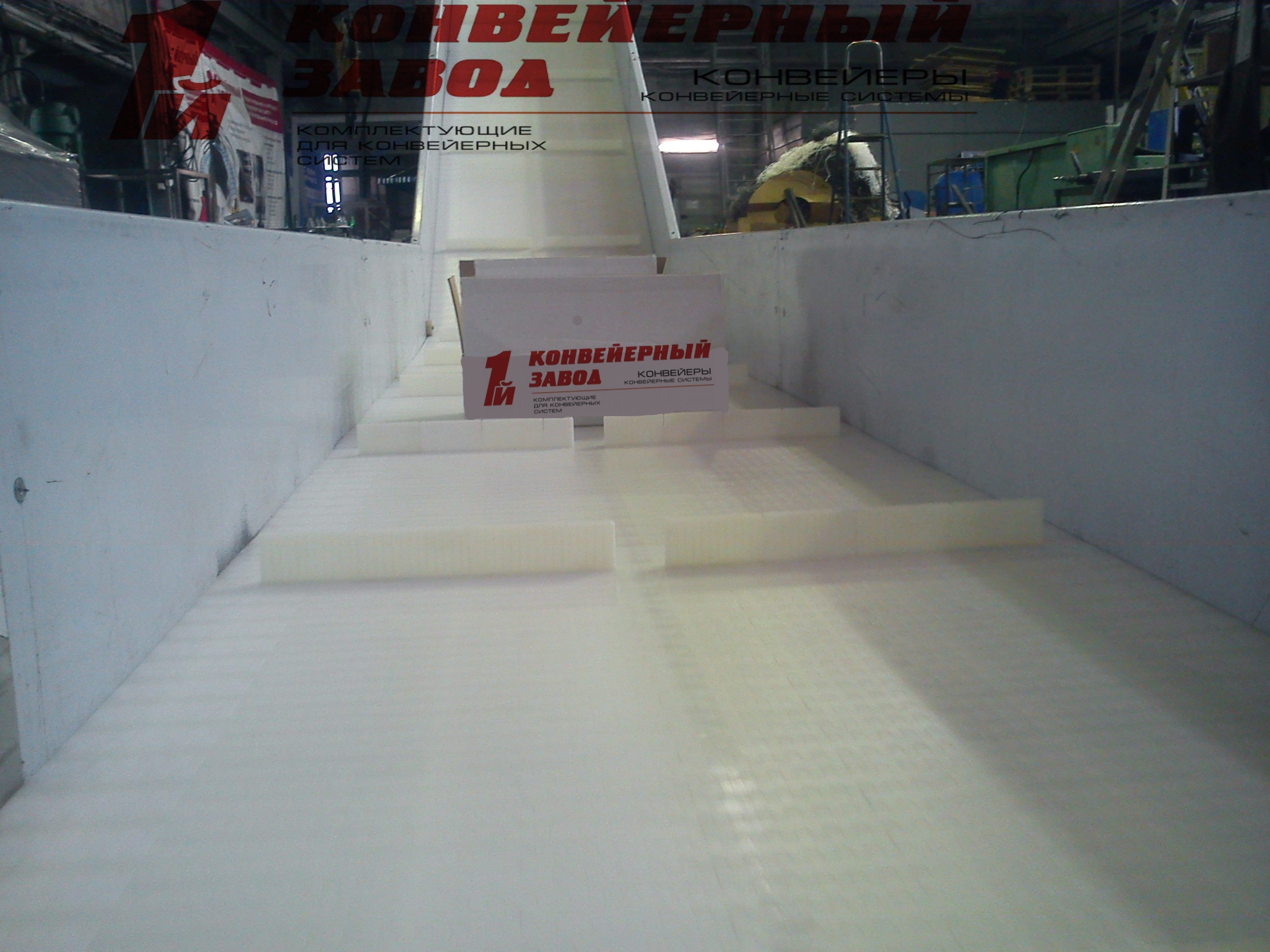 Описание проекта: В начале мая наша компания изготовила и отгрузила конвейер для подачи картона на переработку. Конвейер предназначен для работы в суровых условиях, при температуре от -20 до +30°С. Картон листовой и пакетированный сгружается вручную на конвейер и поднимается под углом 30° на высоту 4000мм, где сбрасывается в шахту пресса. Конвейер изготовлен из нержавеющей стали, ширина пластиковой модульной ленты 900мм с перегородками высотой 50мм, высота бортов 300мм, привод 0,75 кВт (Италия).