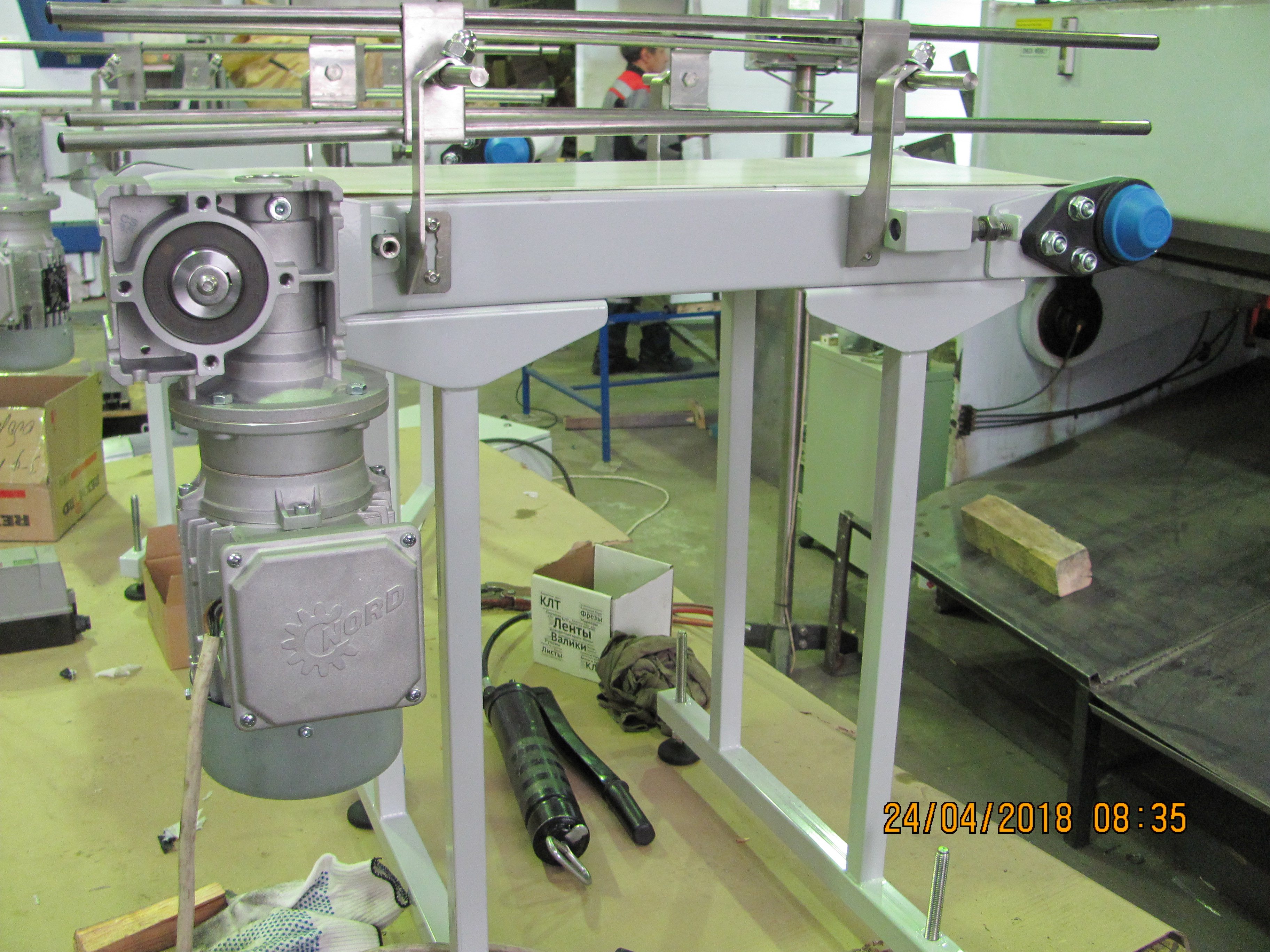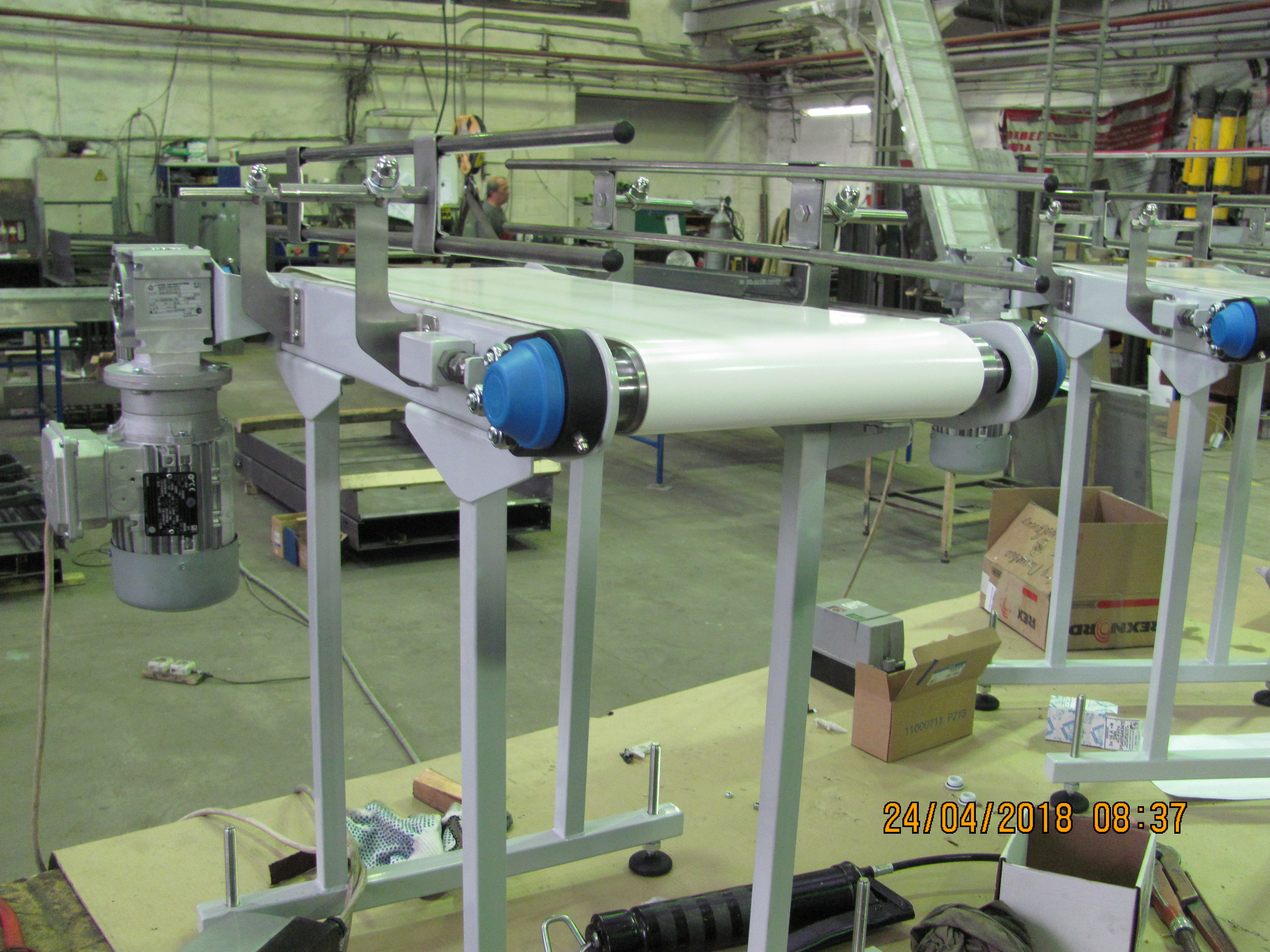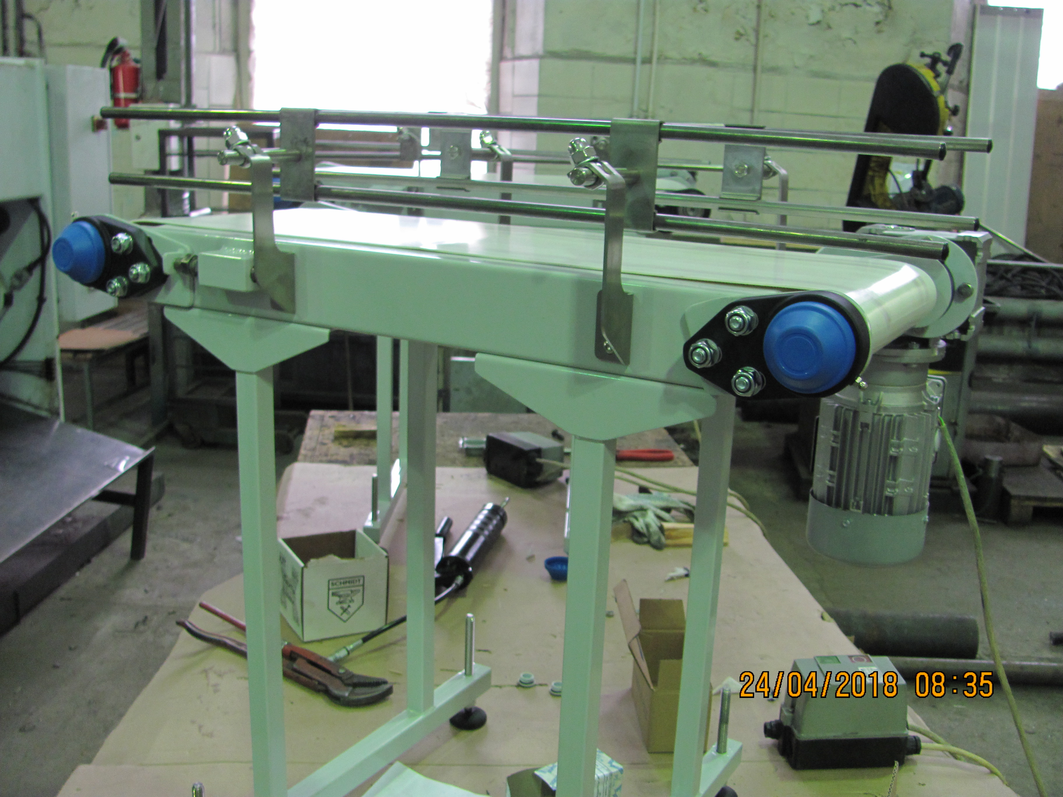 Описание проекта: Для компании производителя аэрозолей изготовлено два ленточных транспортра для установки на них этикеровочного оборудованияТехнические данные:Длина конвейера, мм – 700;Ширина ленты, мм – 250;Материал ленты – ПВХ;Высота конвейера, мм – 700-/+50;Материал конвейера – углеродистая сталь;Перемещаемый груз – гофрокороб;Мотор-редуктор - Европа;Скорость движения ленты, м/мин - 9;