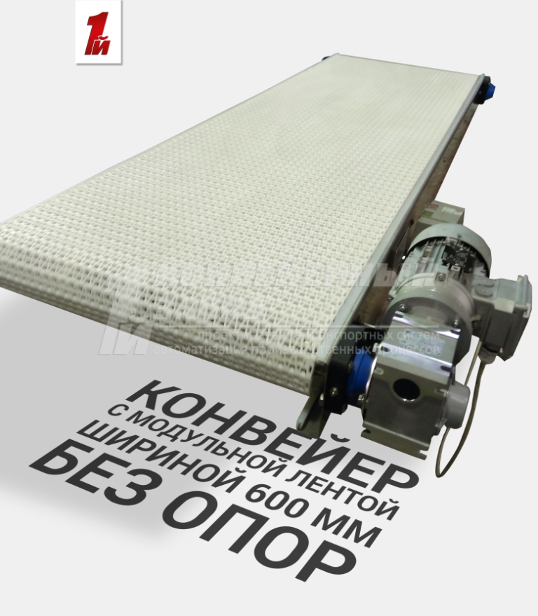 Описание проекта: Для консервного завода изготовлен и отправлен конвейер с модульной лентой без опор. Конвейер служит для накопления поддона с готовой продукцией. Длина конвейера 2000 мм, ширина модульной ленты 600 мм, максимальная нагрузка 100 кг на конвейер, материал конвейера - нержавеющая сталь, привод 0,37 кВт (Германия), скорость движения цепи - 12 м/мин.