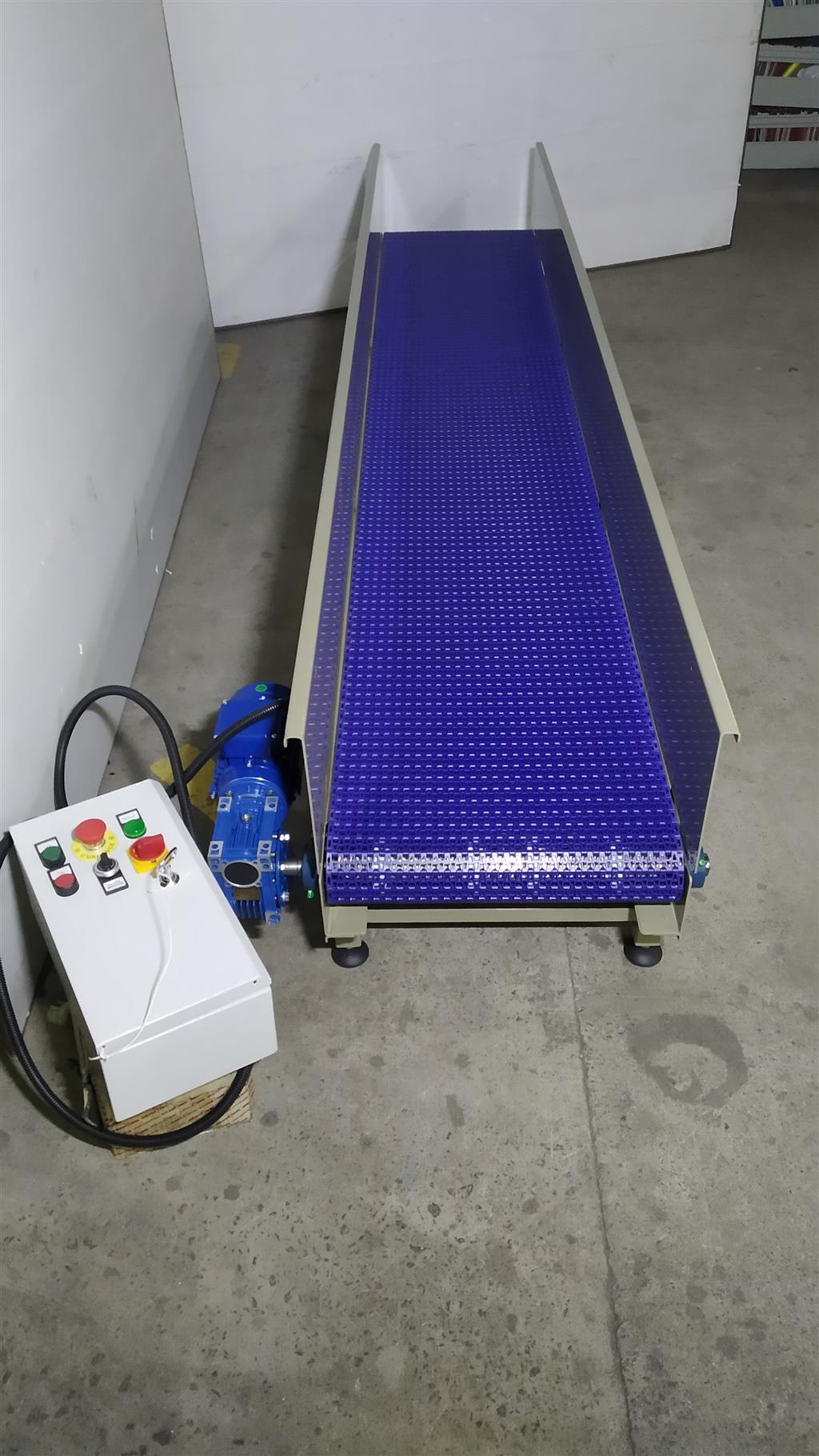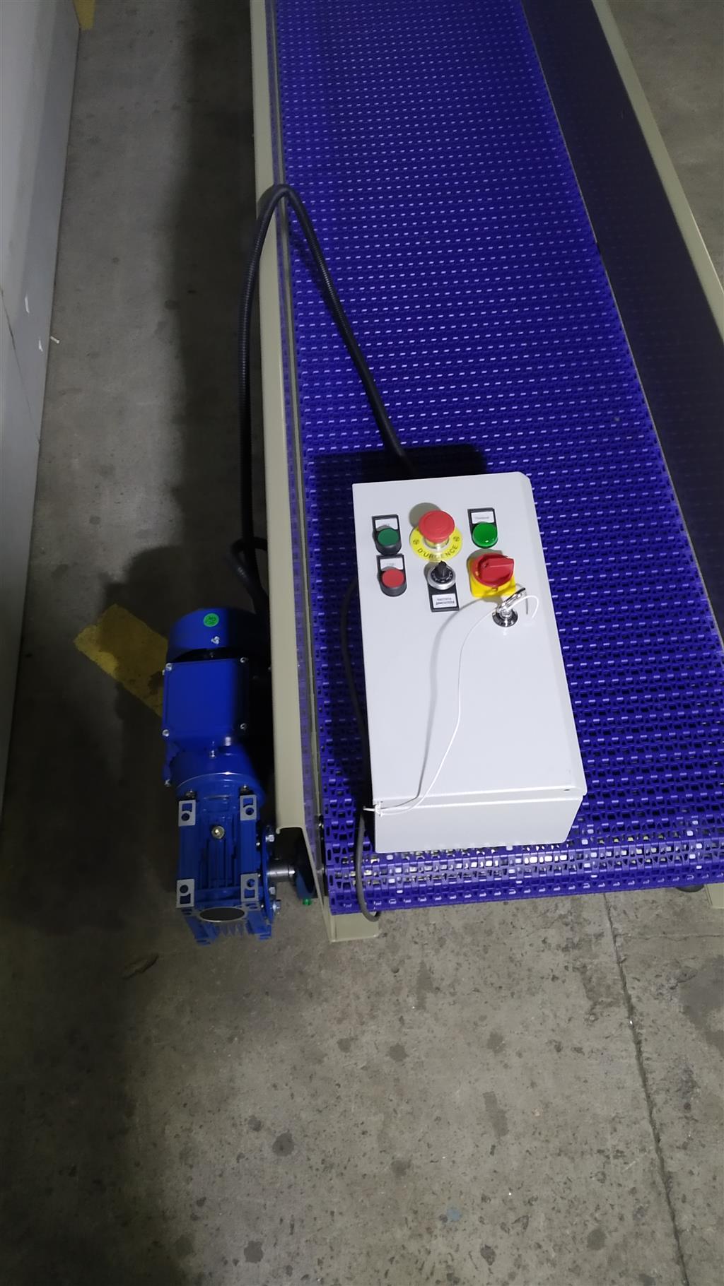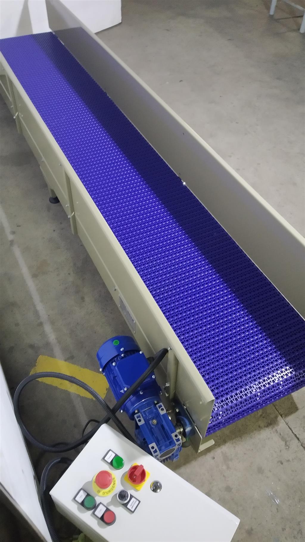Описание проекта: Изготовлен и отгружен конвейер для перемещения мешкой с огнеупорной смесью. Для увеличения срока службы модульной ленты, она изготовлена из ацетала.Технические данные конвейера:длина конвейера 3000 мм;ширина ленты 500 мм;высота конвейера 300 мм;высота ограждения 250 мм;вес перемещаемых мешков 50 кг;материал конвейера углеродистая сталь с порошковой окраской;привод 0,55 кВт;шкаф управления с частотным преобразователем;