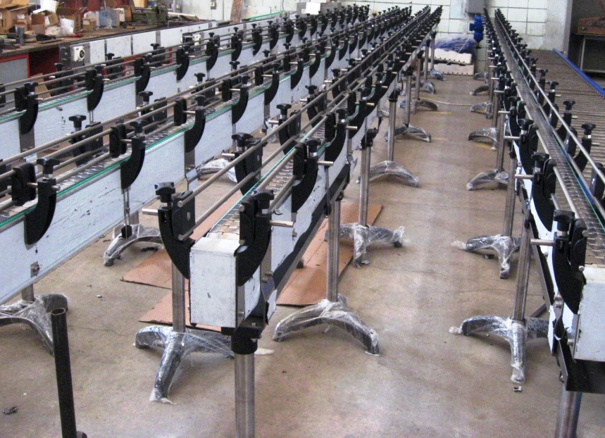 Описание проекта: В середине марта изготовлены и отгружены покупателю 4 пластинчатых конвейера длиной 10 метров. Конвейра будут применяться на новой линии розлива 14 000 б/ч. и изготовлены из нержавеющей стали AISI 304 толщиной 3 мм, нержавеющая пластинчатая цепь 82,5 мм, система капельной смазки цепи, привода 0,75 кВт(Германия) с вариатором, а также с лотками для сбора жидкости под конвейером.