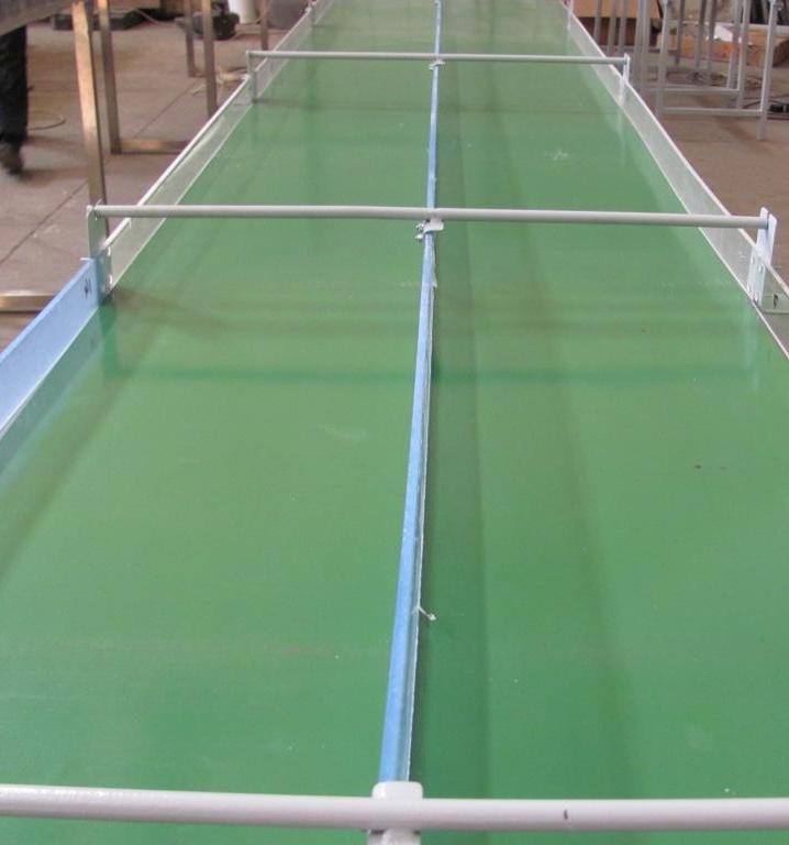 Описание проекта: Изготовлены несколько ленточных конвейеров с центральным и боковым ограждением из оргстекла. Конвейера применяются на линии сборки плат. Длина конвейеров 7000 мм, ширина ленты 650 мм , материал ленты ПВХ (Голландия), материал конструкции - углеродистая сталь с порошковой окраской, привод 0,75 кВт (Италия), регулировка скорости - частотный преобразователь. Конвейера изготовлены передвижные - на колесиках.
