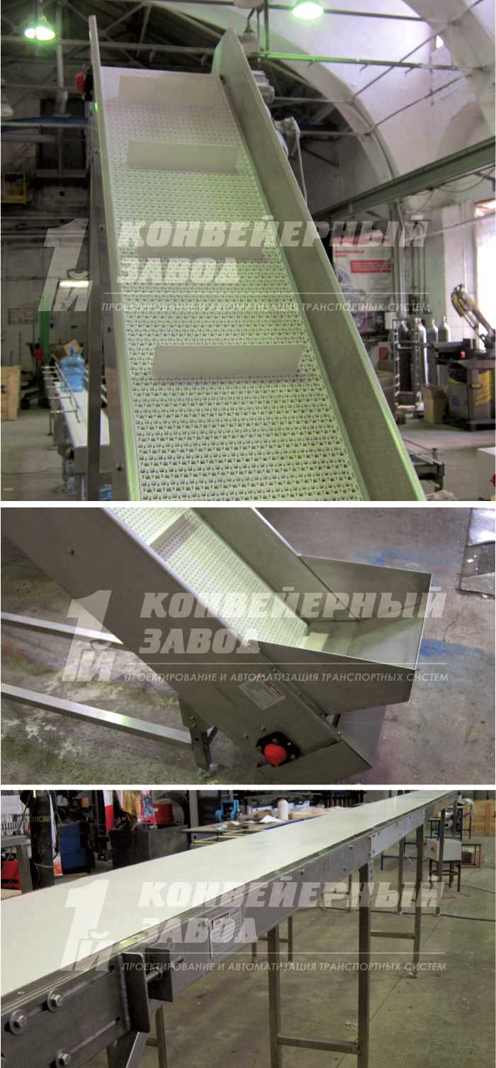Описание проекта: "1-й Конвейерный завод" произвел очередную отгрузку конвейерной системы, предназначенную для перемещения овощной продукции на консервном заводе.В составе заказа: конвейер наклонный с модульной лентой и горизонтальный ленточный транспортер.Все конвейера изготовлены из нержавеющей стали;Привод производства Германии;Лента производство Швейцария;Регулировка скорости – частотный преобразователь в шкафу управления;Длины конвейеров 3000 и 8000мм, ширина 400мм.Наша компания специализируется на изготовлении конвейеров для перерабатывающих производств, консервных и ликеро-водочных заводов.Богатый опыт, качественные и надежные комплектующие, а так же не высокая стоимость - выгодно выделяет нас среди других производителей.