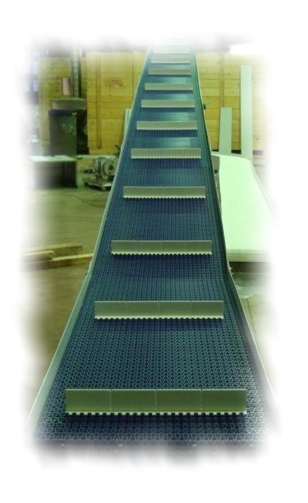 Описание проекта: Спроектирована, изготовлена и отгружена заказчику конвейерная система из 4-х конвейеров, общей длиной более 60 метров. Конвейера будут использоватся на мясокомбинате для перемещения пустых чистых ящиков между цехами. В конвейерную систему входят как горизонтальные, так и наклонные конвейера (см.фото). Тяговый элемент - модульная лента из полиацетала (Швейцария)шириной 500мм,для участка подъема используются упоры высотой 100мм, каркас конвейера из углеродистой стали с порошковой окраской, привода 0,75 кВт (Италия).