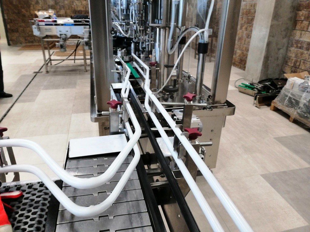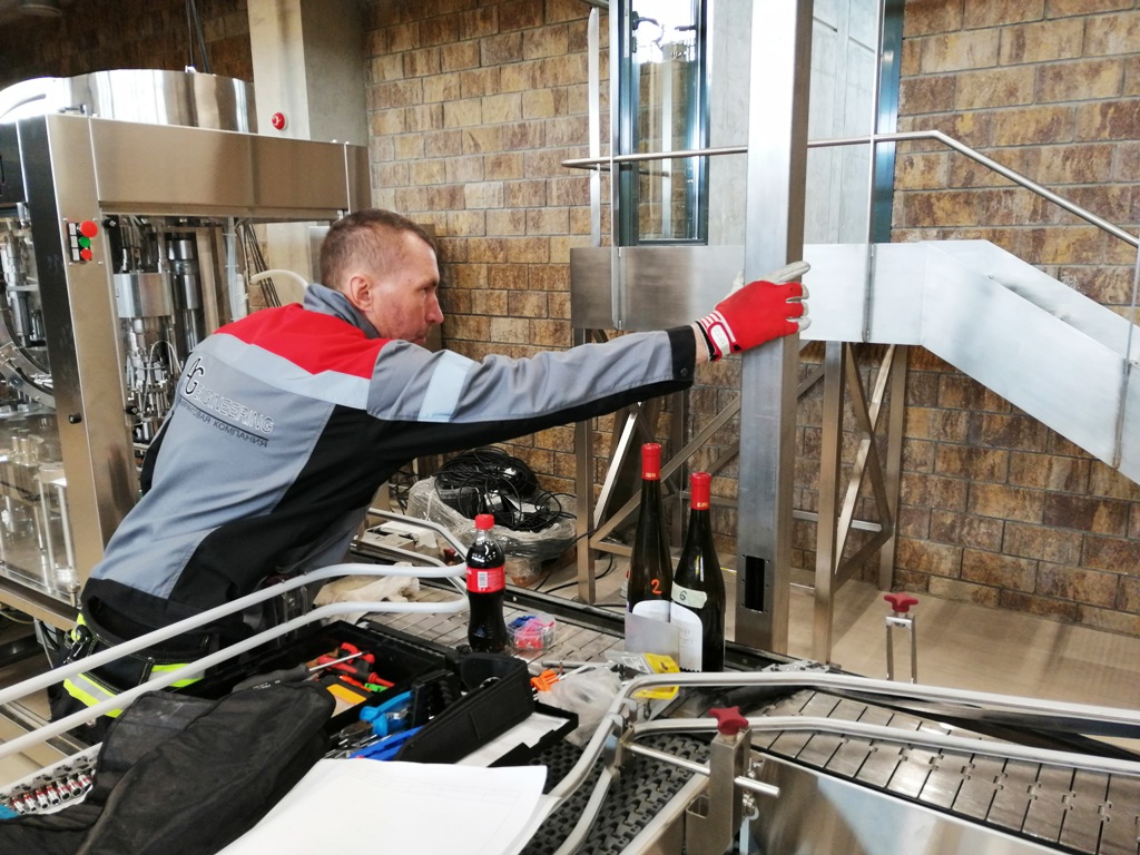 Описание проекта: Осуществлена поставка и монтаж транспортной системы для винодельческого завода под Новороссийском (Краснодарский край).Автоматическая конвейерная линия смонтирована в составе:прямоугольные накопительные столы с модульной лентой, 2 шт.;круглый накопительный стол;неприводной рольганг;пластинчатые (цепные) конвейеры с пластиковой цепью, 4 шт.;шкаф управления конвейерной линией и оборудованием для розлива вина и оформления бутылок.Монтаж линии был выполнен качественно и в договорные сроки.