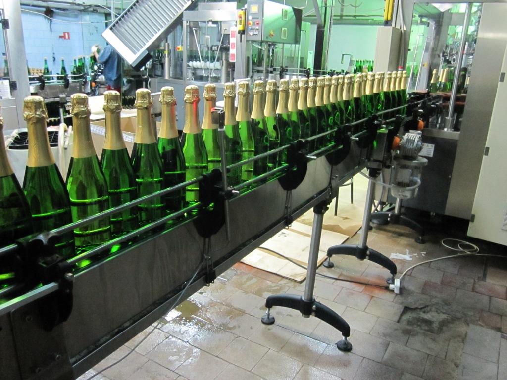 Описание проекта: В Августе наша компания изготовила, смонтировала и запустила конвейерную систему из 7 пластинчатых конвейеров на линии розлива шампанских вин, производительностью 6000 б/ч. В составе линии есть как прямые участки, так и поворотные участки на 45? и 90?, а также переходные секции с конвейера на конвейер. Все конвейера изготовлены из нержавеющей стали AISI 304. Конвейерные комплектующие - AVE, Rexnord, Sistem Plast. Привода - (Италия). Общий шкаф управления с частотными преобразователями (Германия)Линию розлива производства Италии (ополаскиватель, изобарический розлив, мюзлевочный автомат, осушитель поверхности бутылки и этикетировочный автомат) поставили наши партнеры из компании "AG Engineering"
