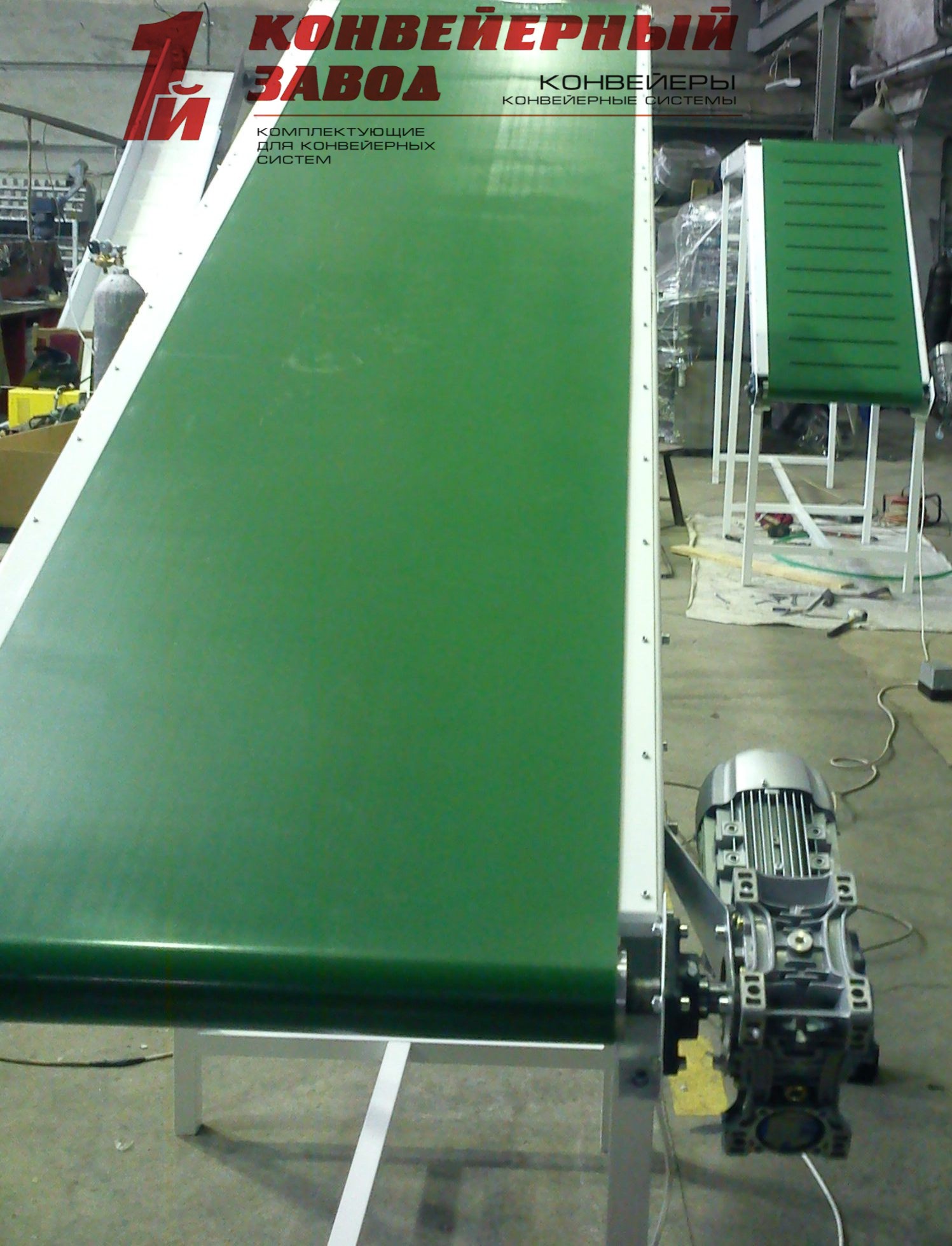 Описание проекта: Изготовлены 2 наклонных ленточых конвейера для перемещения деталей от формовочного автомата на стол. Длина конвейеров 5900 и 4000 мм, ширина ленты 700мм (ПВХ), угол наклона 25° и 45°, материал конвейеров - углеродистая сталь с порошковой окраской (RAL 9016), мощность приводов 0,55 Квт (Италия). Этому заказчику уже поставлялся ленточный конвейер и он вновь обратился к нам.