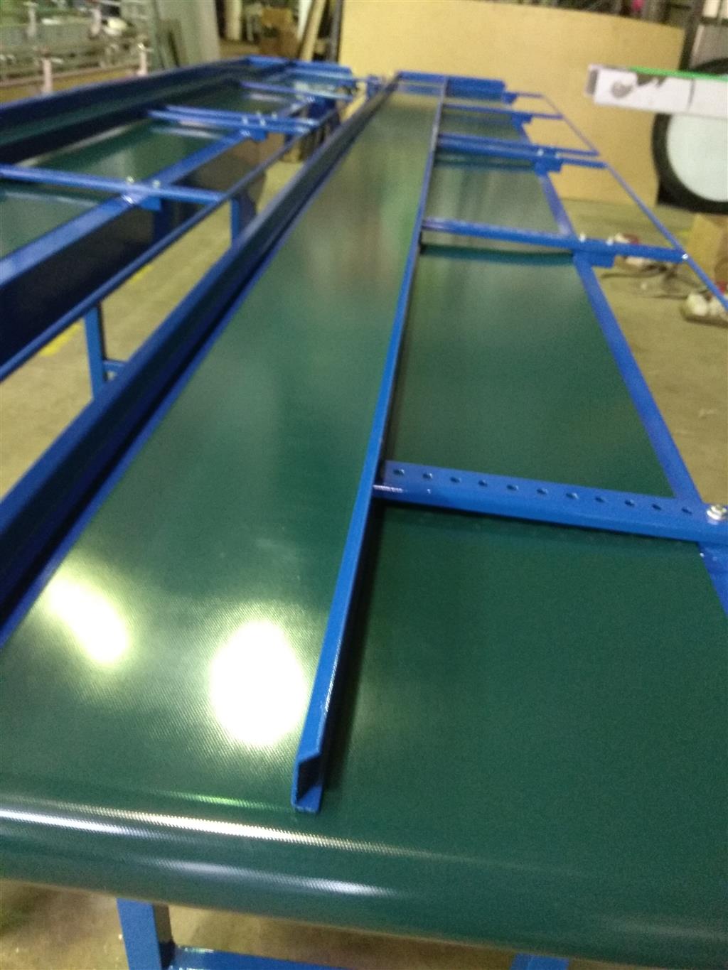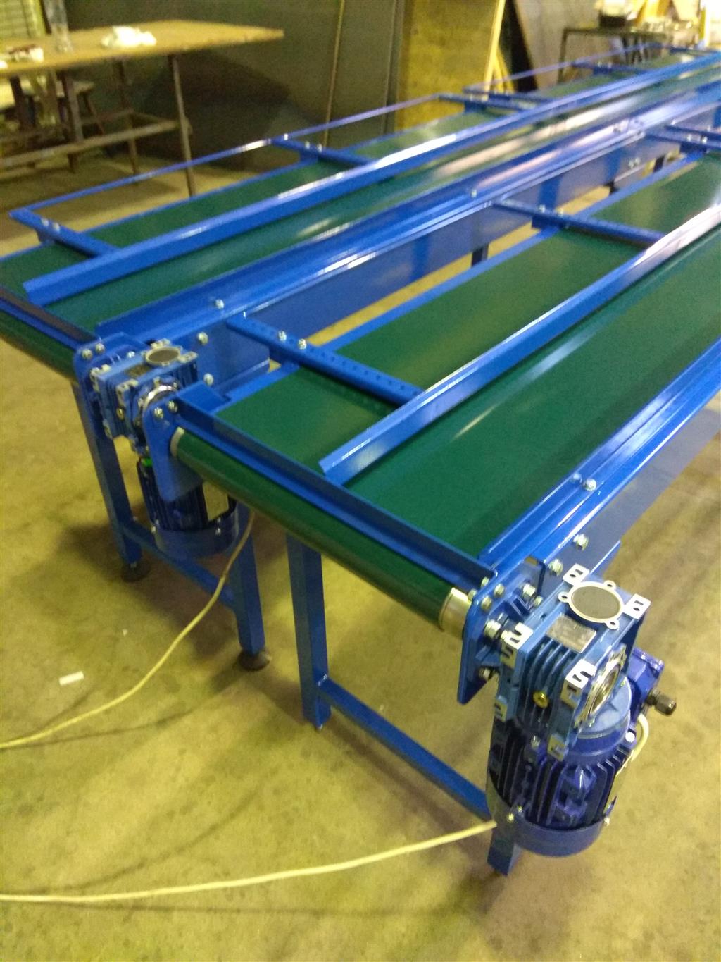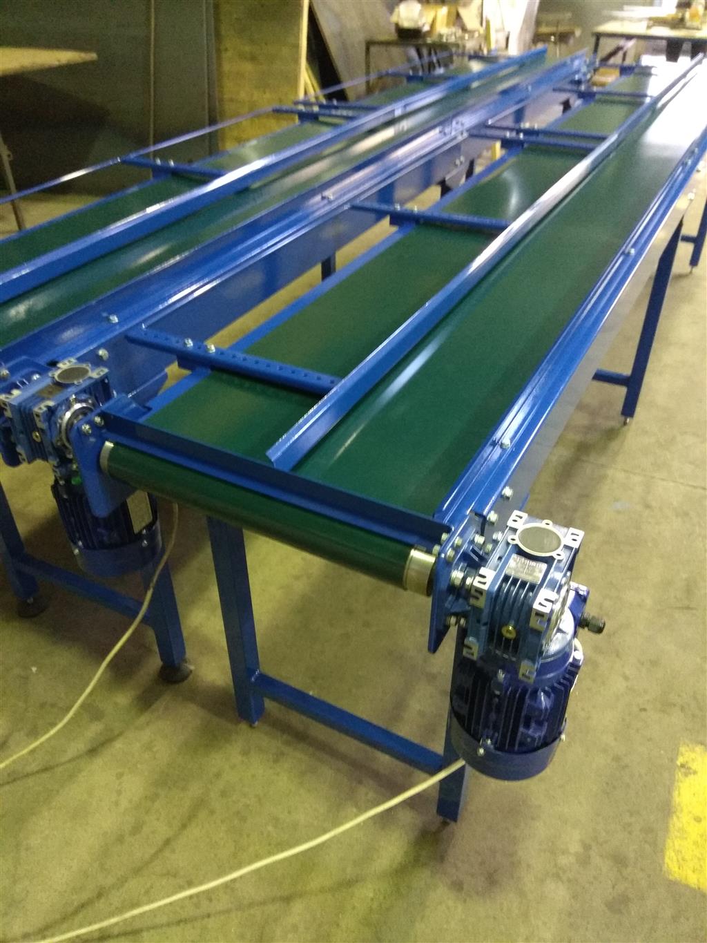 Описание проекта: Для компании, открывающей новый цех на производстве, изготовлены 2 ленточные конвейера. Они предназначены для медленного движения на нем деталей автомобиля.Основные технические характеристики конвейеров:материал конвейера - углеродистая сталь с порошковой окраской (RAL 5017);длина конвейеров - 3500 мм;ширина ленты ПВХ - 400 мм;боковое регулируемое ограждение с одной стороны;скорость движения ленты - 1,5 м/мин;привод: мотор-редуктор (Италия);