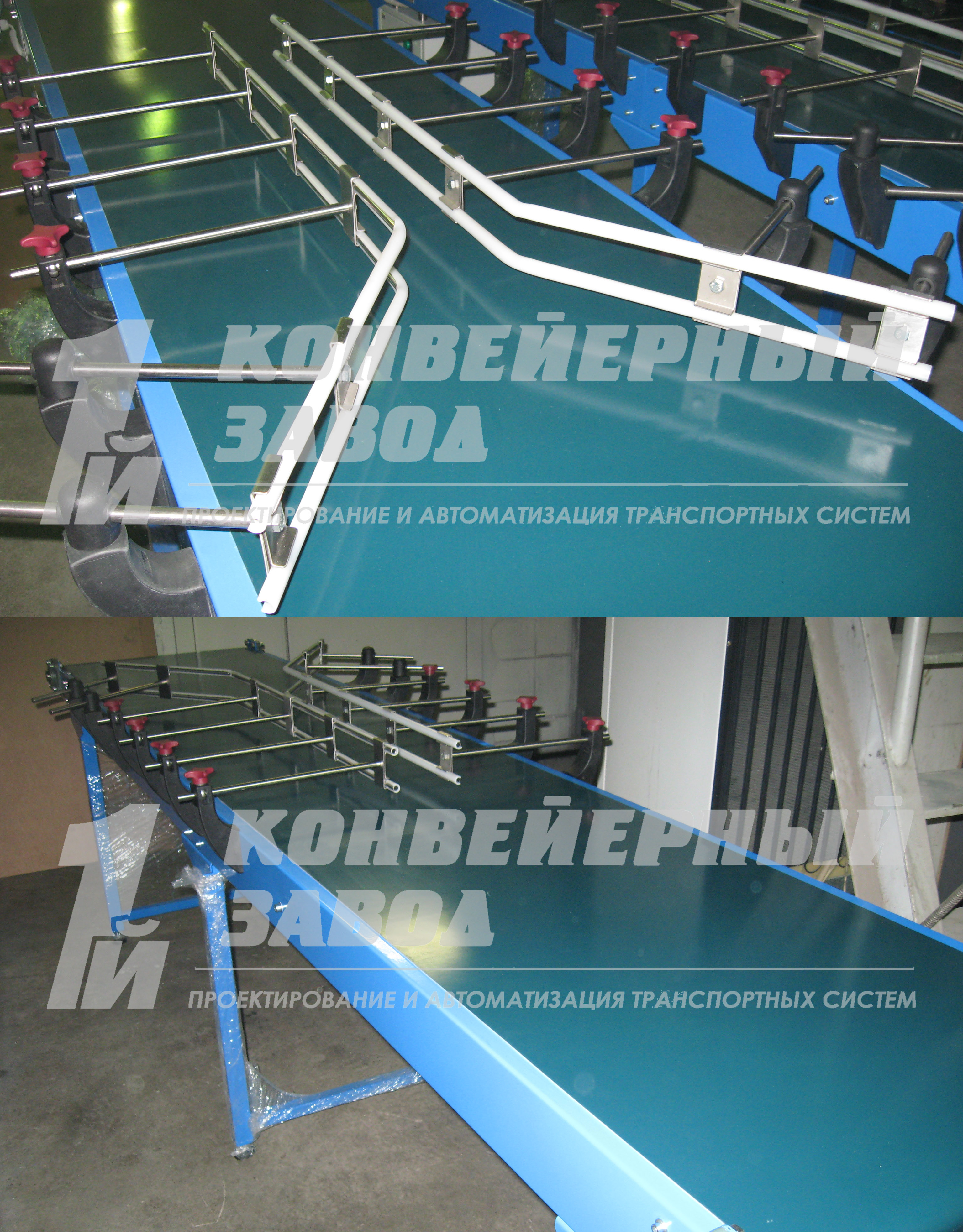 Описание проекта: Отгружены 2 ленточных конвейера для крупного Логистического центра. Конвейеры являются частью системы по термоупаковке продукции. На конвейерах установлены кронштейны ограждения с гибкой системой регулировки в зависимости от ширины груза. Конвейеры изготовлены из углеродистой стали с порошковой окраской, длина конвейеров 3000мм, ширина ленты ПВХ 500мм, привод 0,37 кВт со шкафом управления и частотным преобразователем.