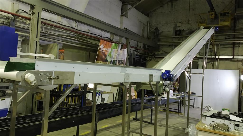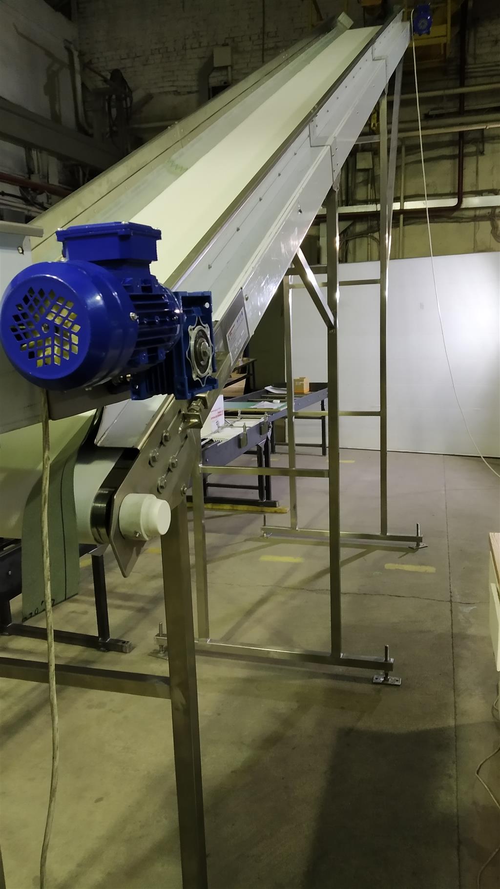 Описание проекта: Для перемещения компоста изготовлены и отгружены 2 ленточных конвейера. Первый конвейер горизонтальный на высоте 1400 мм, второй конвейер наклонный с 1400 до 3800 мм. Конвейеры имеют отбортовку высотой 200 мм, ширину ленты 500 мм, длину 3000 и 6000 мм, шкаф управления на каждый конвейер с частотным преобразователем, мотор редукторы со скоростью движения ленты от 12 до 40 м/мин. Конвейеры изготовлены из нержавеющей стали.