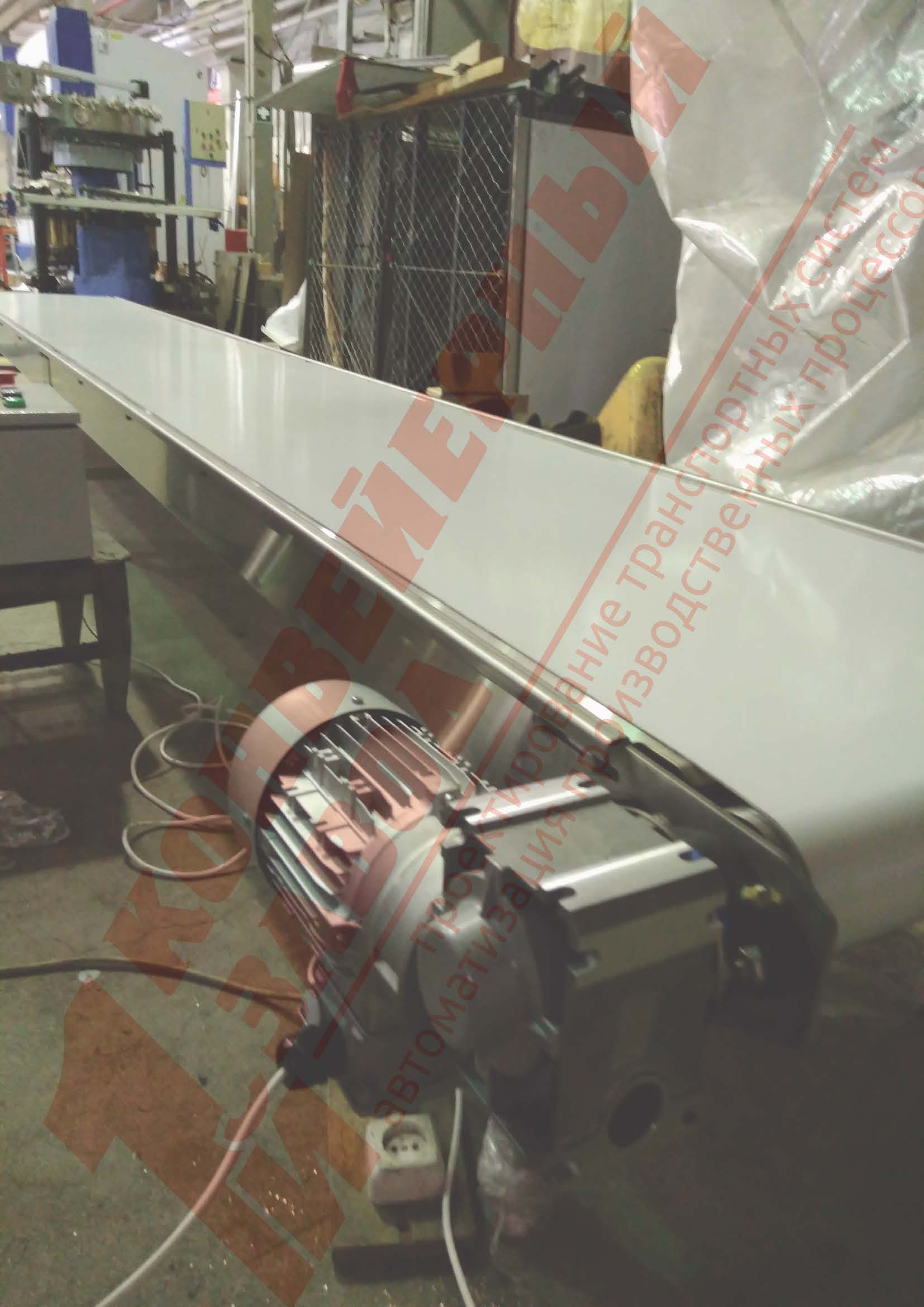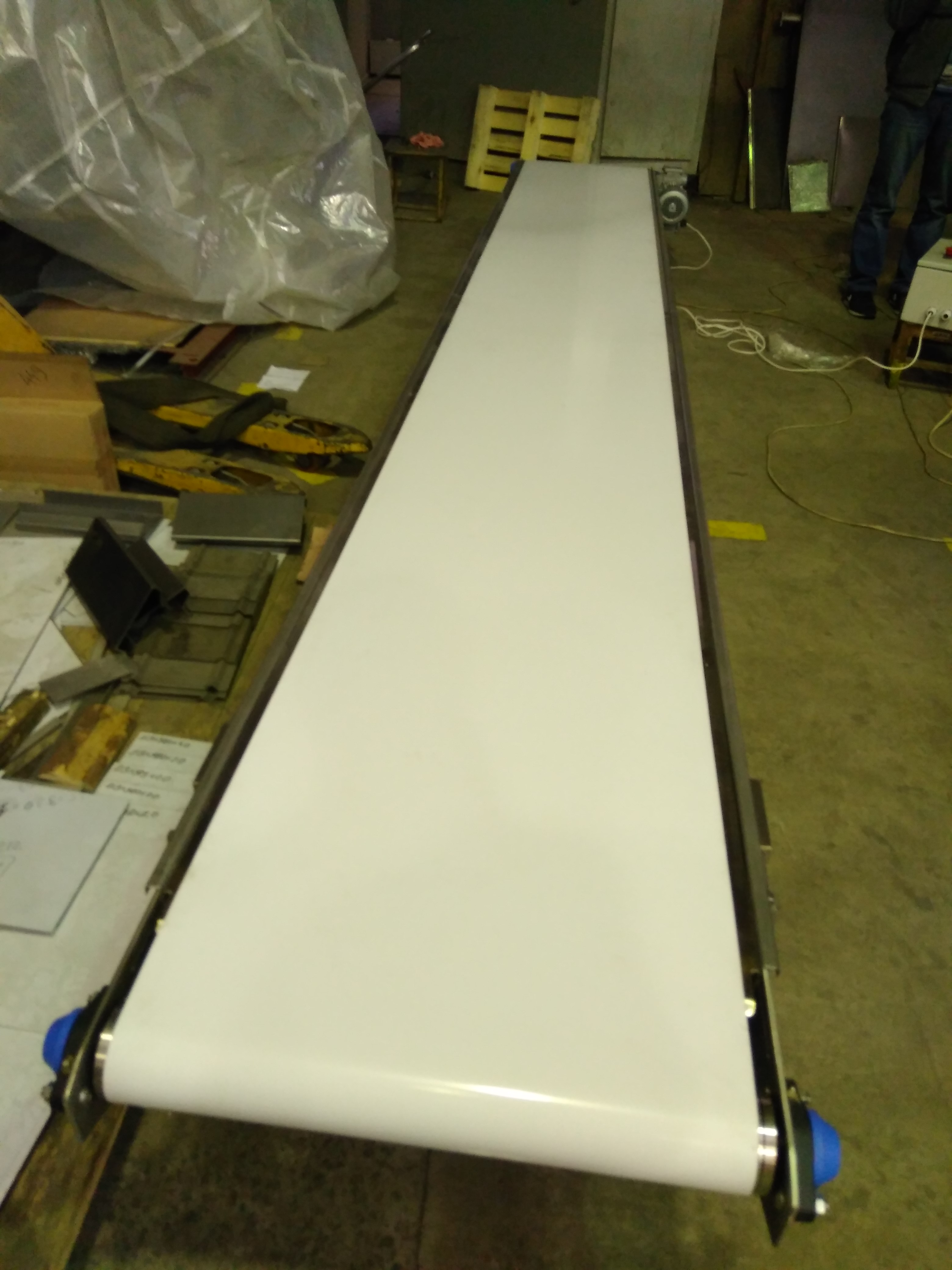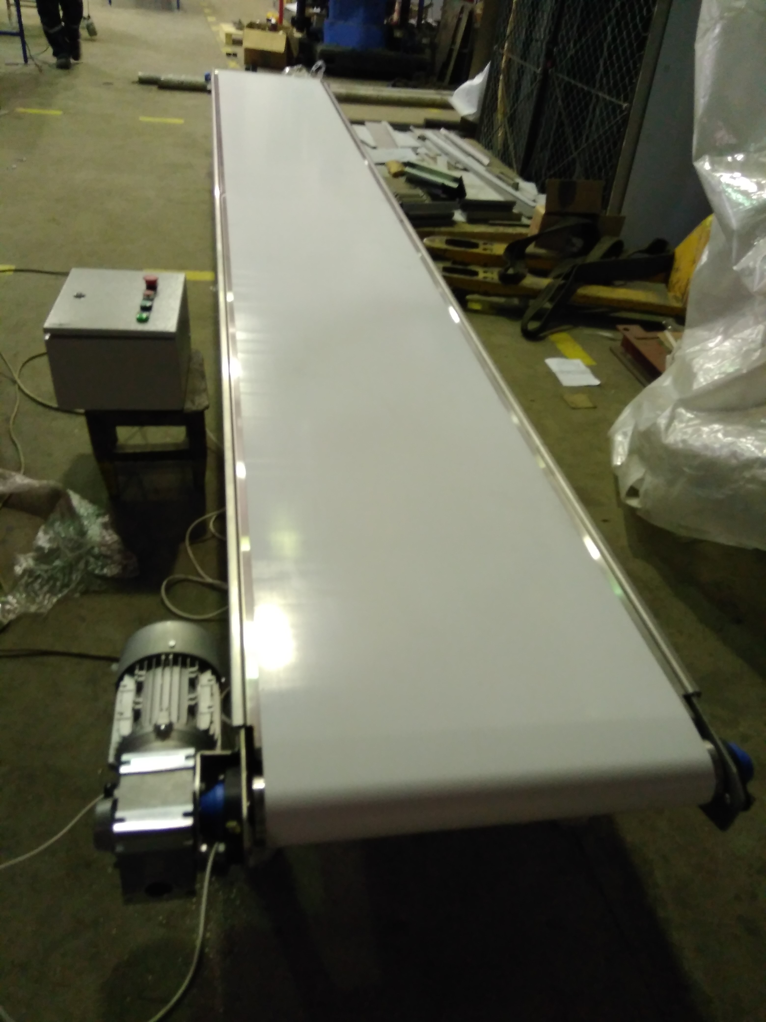 Описание проекта: Изготовлен и отгружен ленточный конвейер для перемещения фруктов и овощей.Конвейер изготовлен из нержавеющей стали, длина конвейера 5000мм, ширина пищевой ленты ПВХ 600мм, высота конвейера 500мм, мотор-редуктор (Германия), скорость движения ленты 20 м/мин, регулировка скорости - инвертер в шкафу управления.