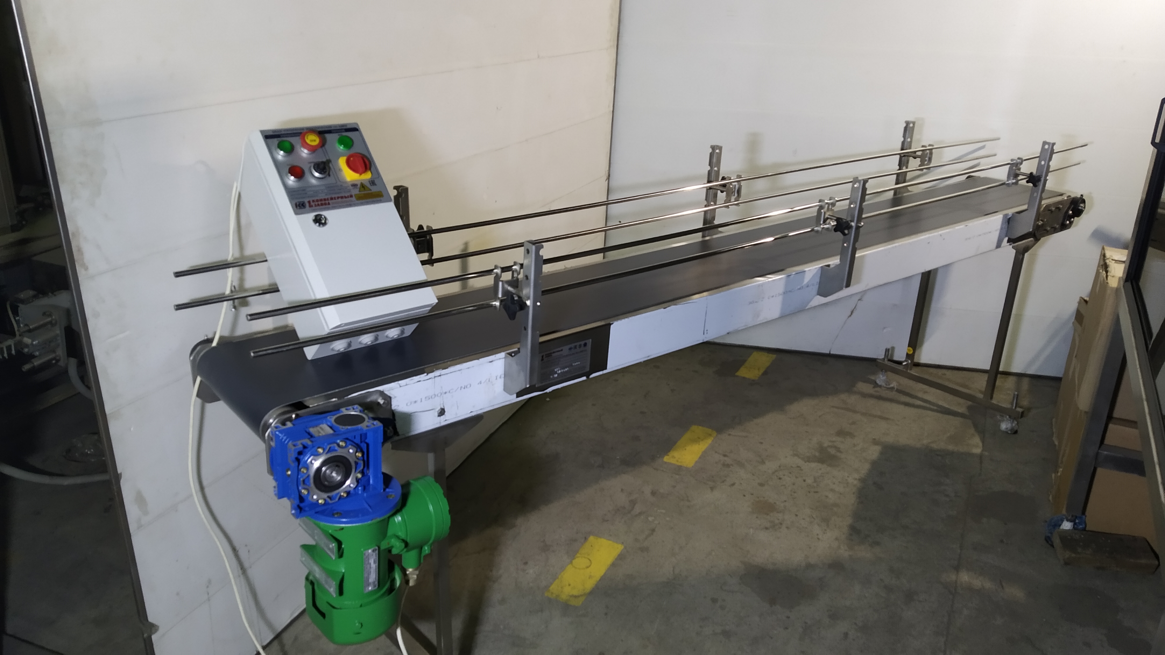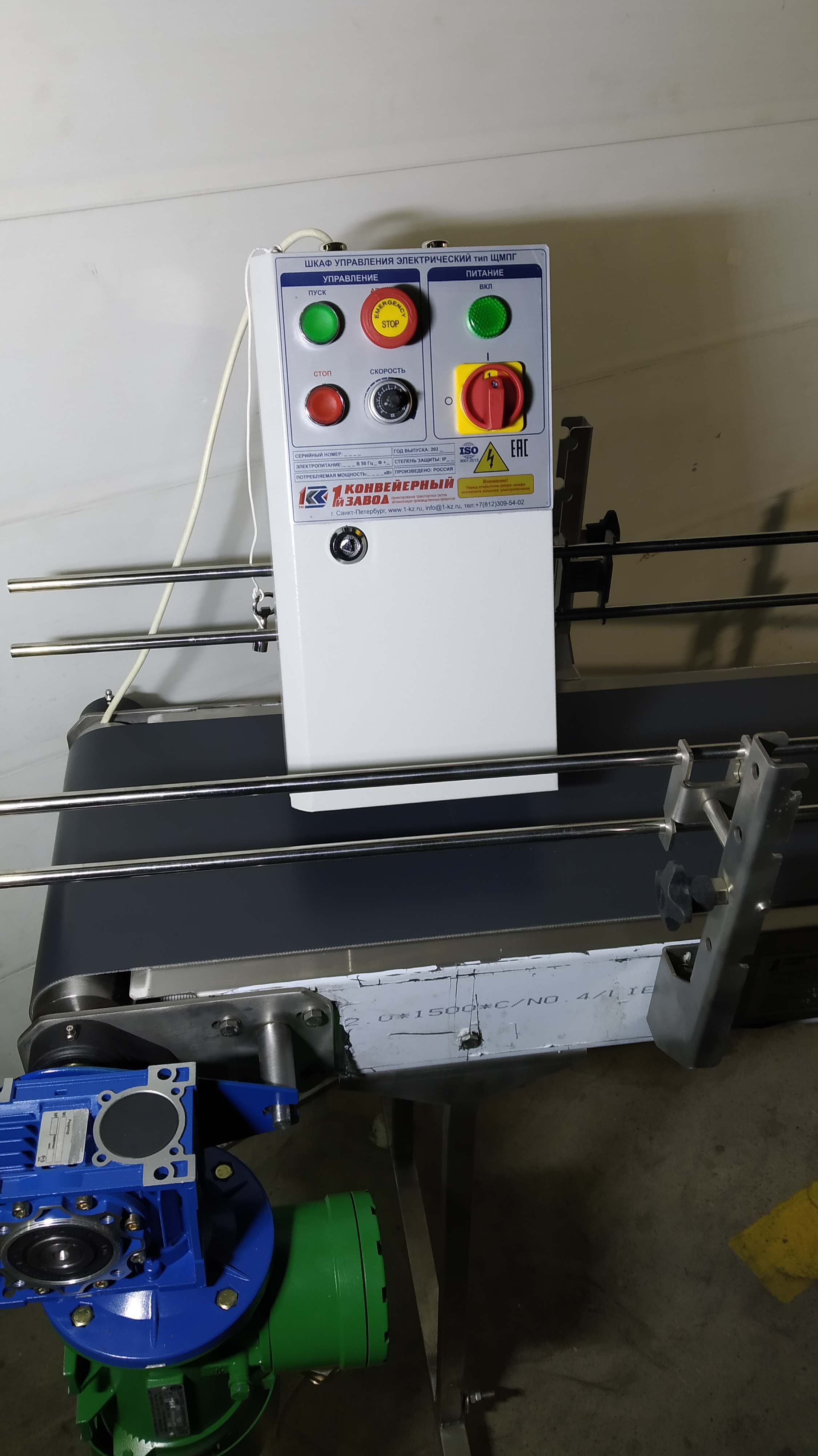 Описание проекта: Для предприятия, производящего краски и эмали, изготовлены два конвейера: ленточный конвейер и не приводной рольганг. Эти конвейеры служат для перемещения банок с красками.Технические параметры ленточного конвейера:длина конвейера 3000 мм;ширина антистатической ленты ПВХ 300 мм;регулируемые кронштейны ограждения по высоте;материал всех частей конвейера - нержавеющая сталь;взрывозащищенный привод со шкафом управления и частотным преобразователем;Технические параметры не приводного рольганга:длина рольганга 2500 мм;длина ролика 300 мм;диаметр роликов 30 мм;регулируемые кронштейны ограждения по высоте;материал всех частей рольганга - нержавеющая сталь;