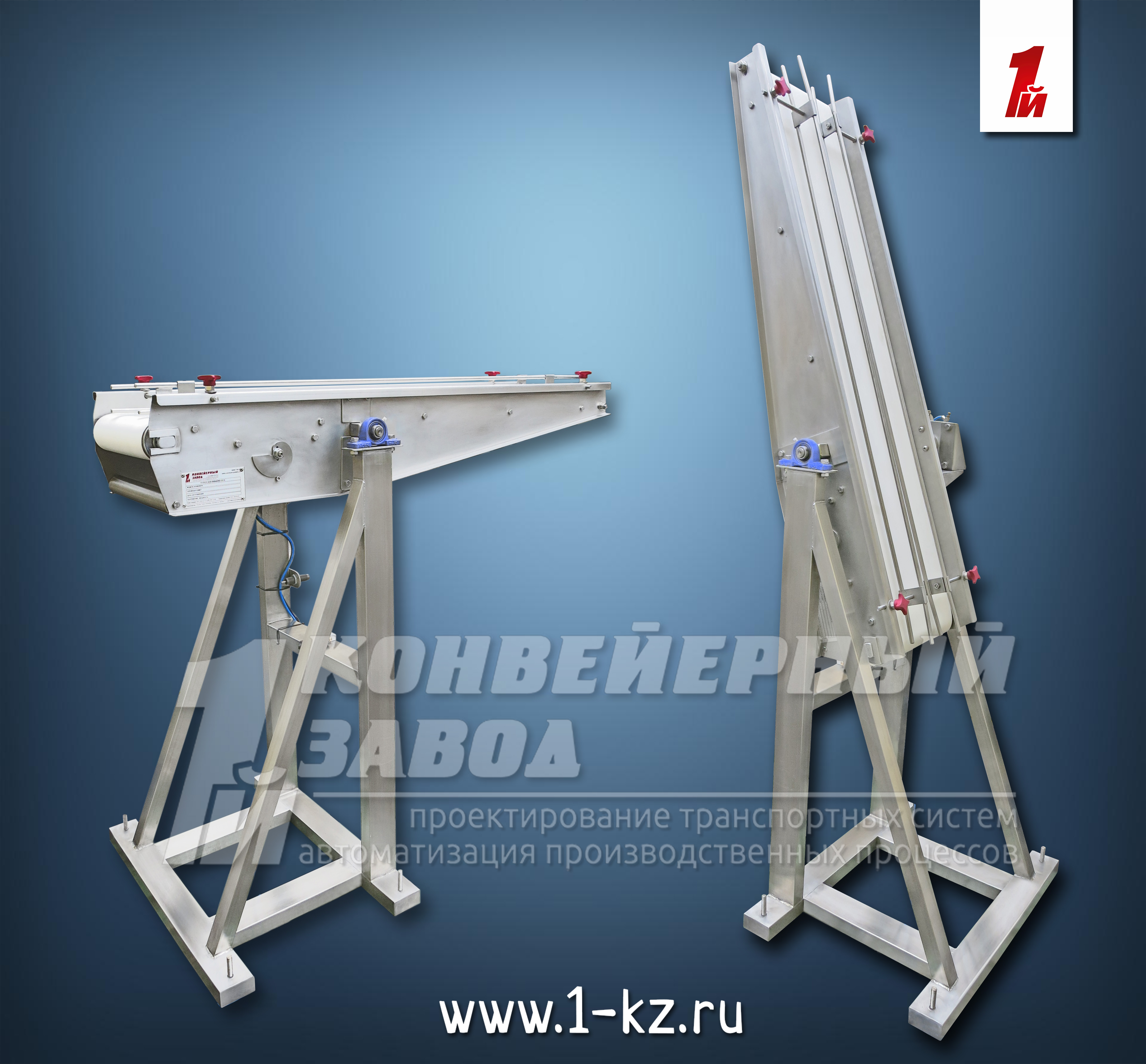 Описание проекта: Для небольшого хлебокомбината изготовлен ленточный конвейер с подъемным механизмом. Подъем конвейера с горизонтального(рабочего) положения до вертикально происходит от пневмоцилиндра и предназначен для прохода персонала через работающую линию.Основные параметры конвейера:длина конвейера - 1400ммширина ленты - 300ммматериал конвейера - нержавеющая стальрегулируемые кронштейны огражденияпривод: мотор-барабан