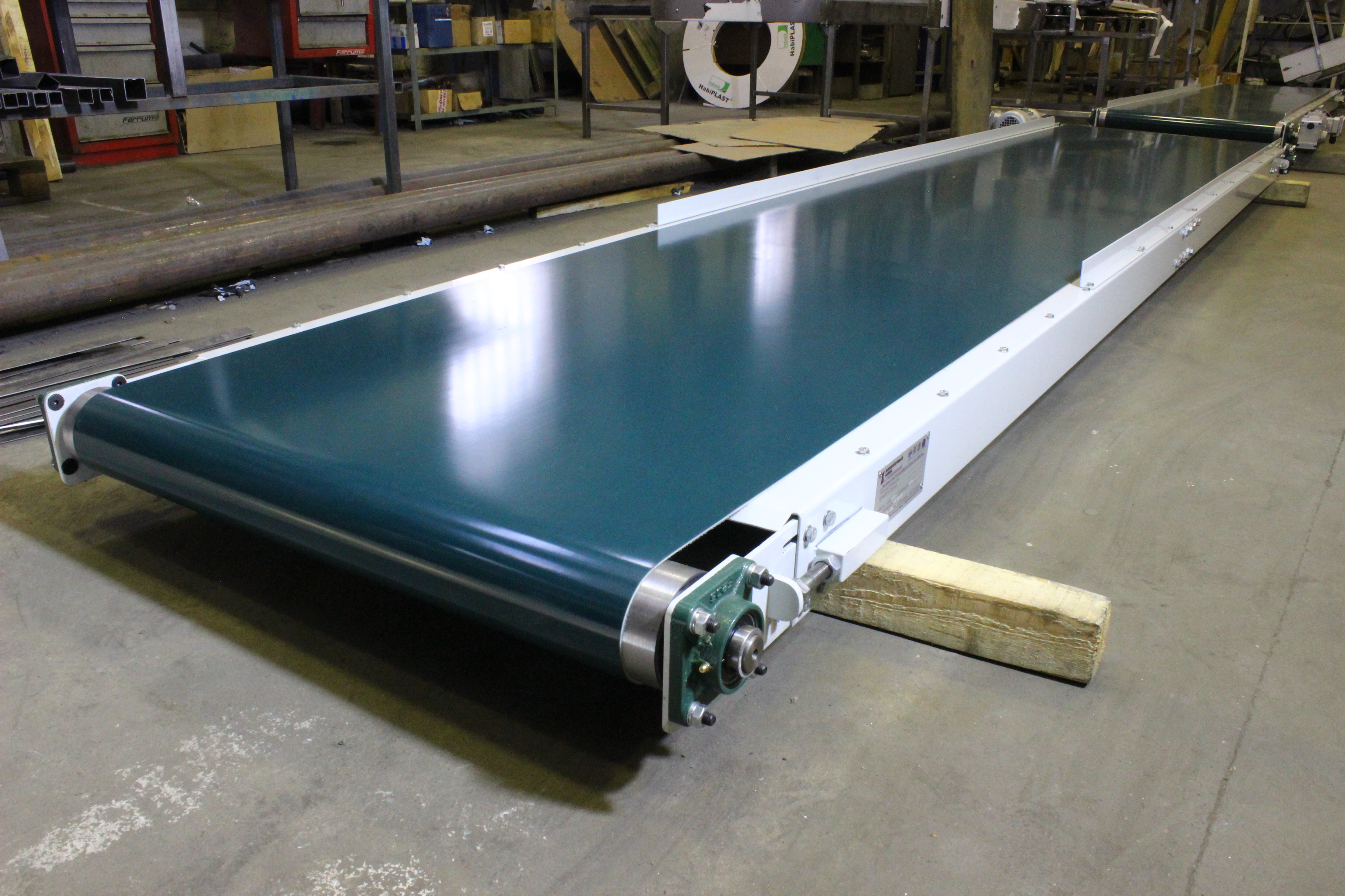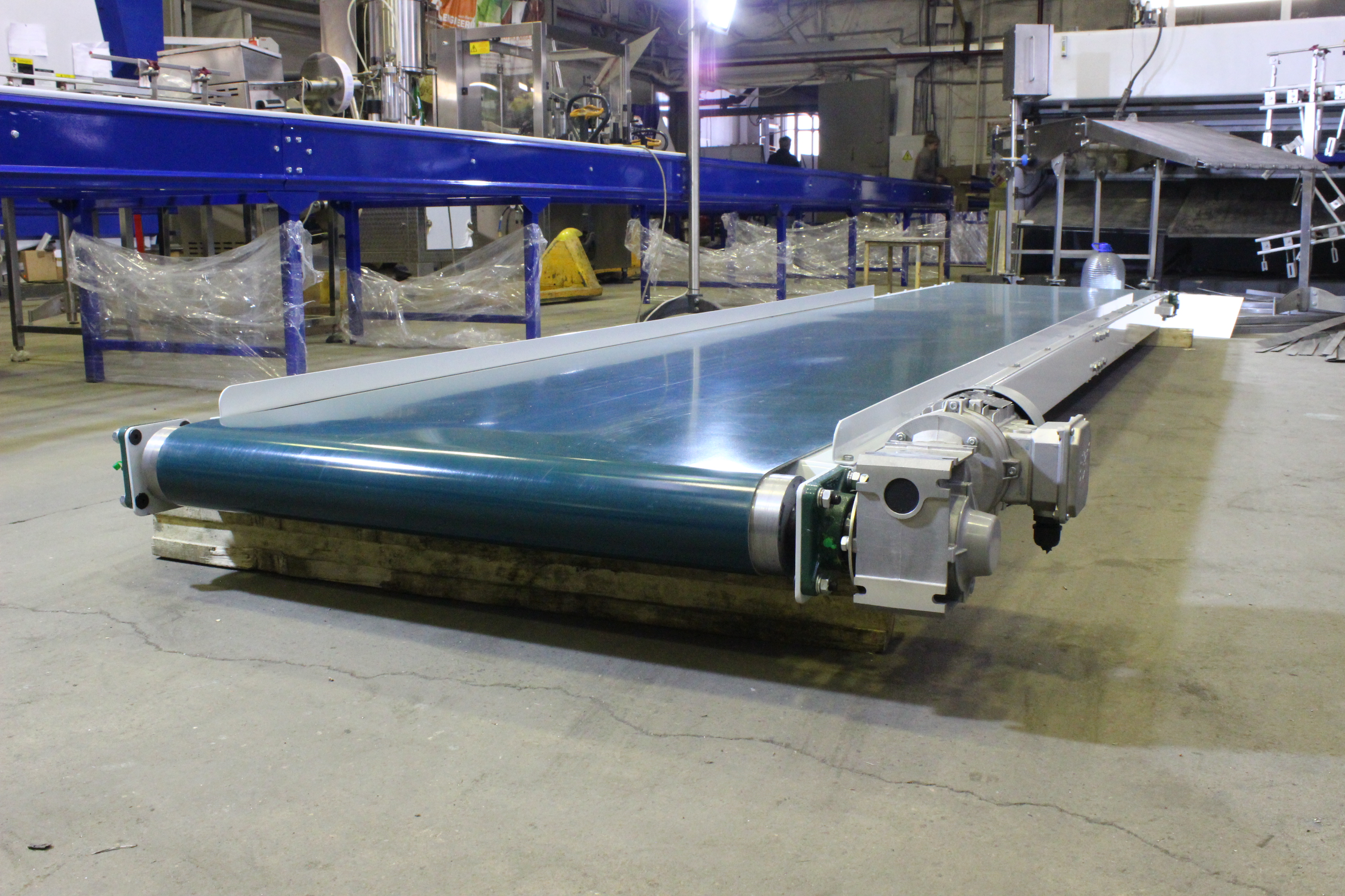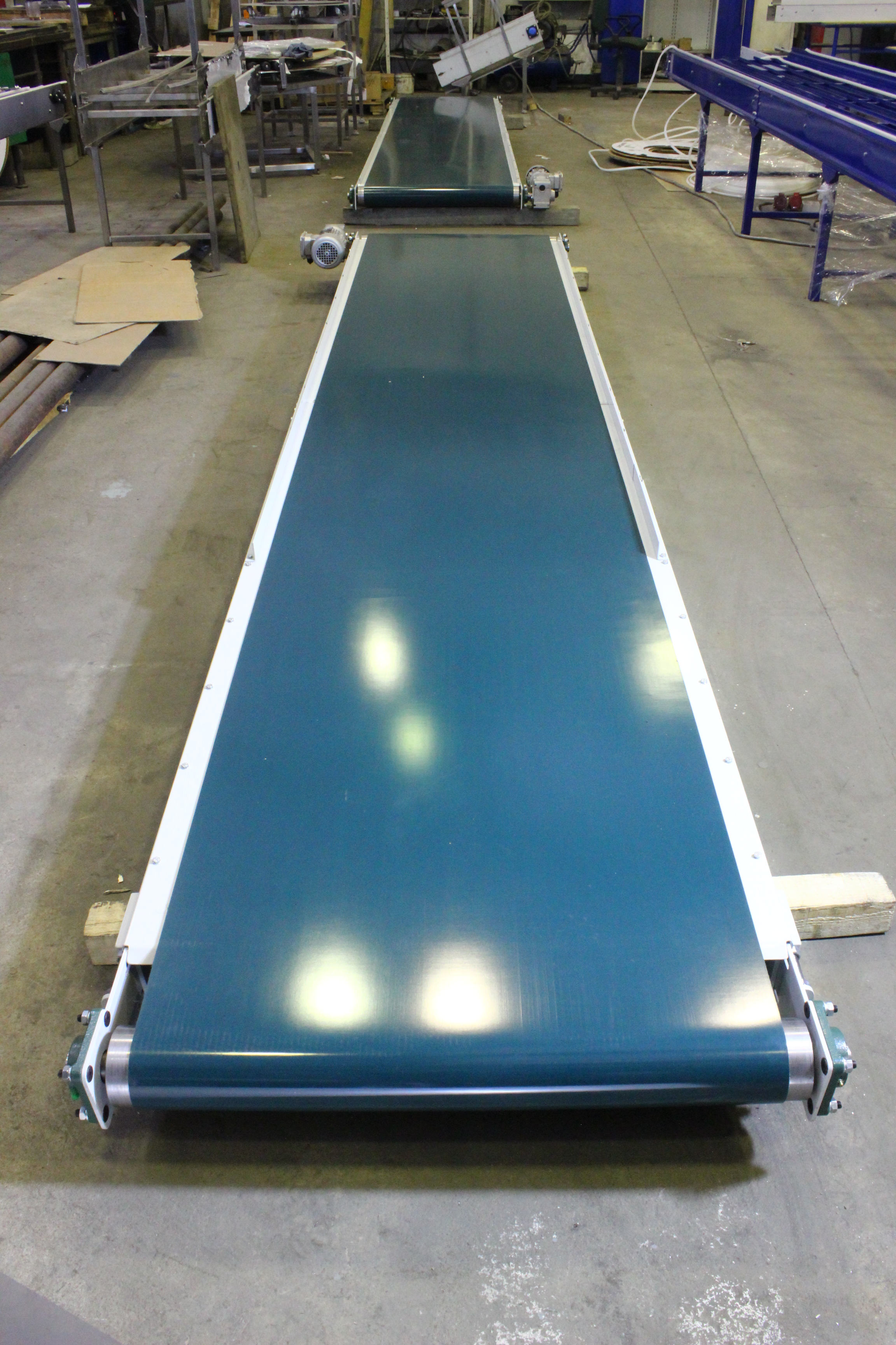 Описание проекта: Для постоянного покупателя, изготовлены еще 2 ленточных конвейера, предназначенные для перемещения пластиковых изделий.Длина 4200мм, ширина ленты ПВХ 800мм, без опор, привод 0,37 кВт (Германия), скорость лены 12 м/мин.Общее количество конвейеров, поставленных данному покупателю - 12 шт.