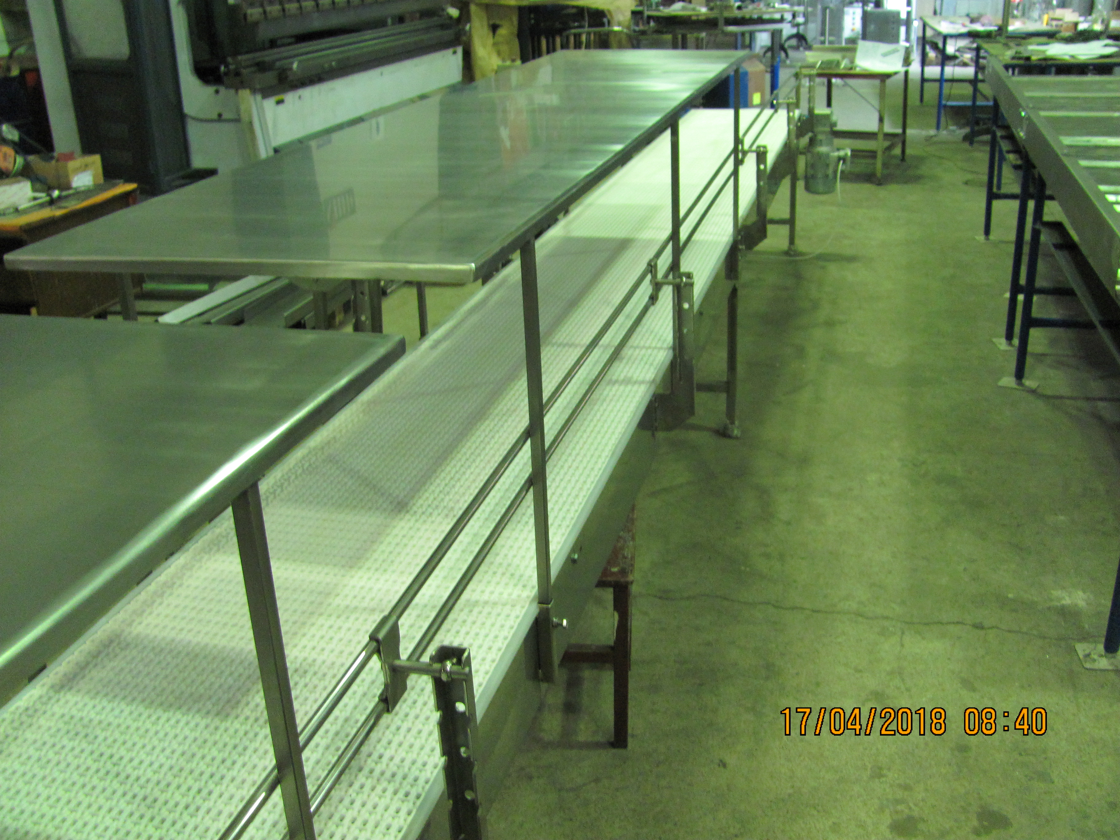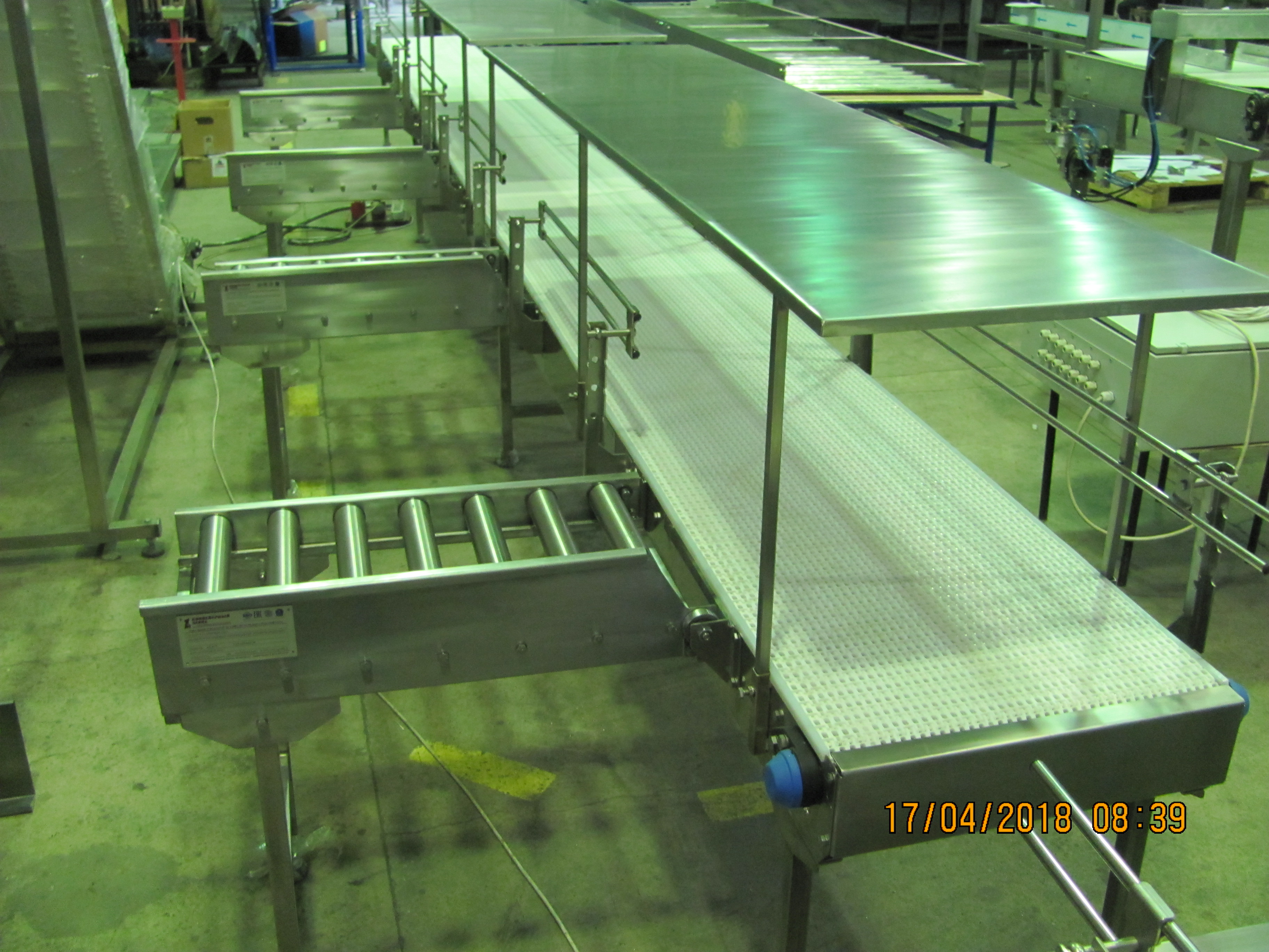 Описание проекта: Была изготовлена и введена в эксплуатацию линия для упаковки коробок с моющими средствами. Особенность линии - откидные рольганги сделанные для экономии пространства в цеху и удобства перемещения операторов.Состав линии:1.Рольганги гравитационные, откидные2. Конвейер приводной с модульной лентой прямой3. Конвейер приводной прямой стационарный4. Рольганг гравитационный с наклоном