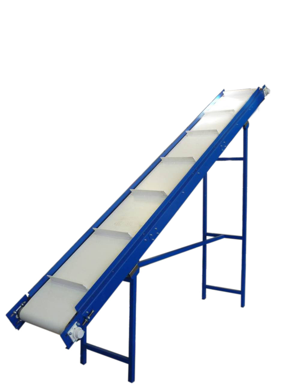 Описание проекта: В начале марта для одного из наших клиентов изготовлен ленточный наклонный конвейер с упорами, для транспортировки гофрокоробов с продукцией под углом 45°.Высота конвейера от 750 до 3500 мм, ширина ленты 500 мм, материал ленты ПВХ (Голландия), длина конвейера 4100 мм, конструкция конвейера из углеродистой стали с порошковой окраской, привод 0,37 кВт (Италия)