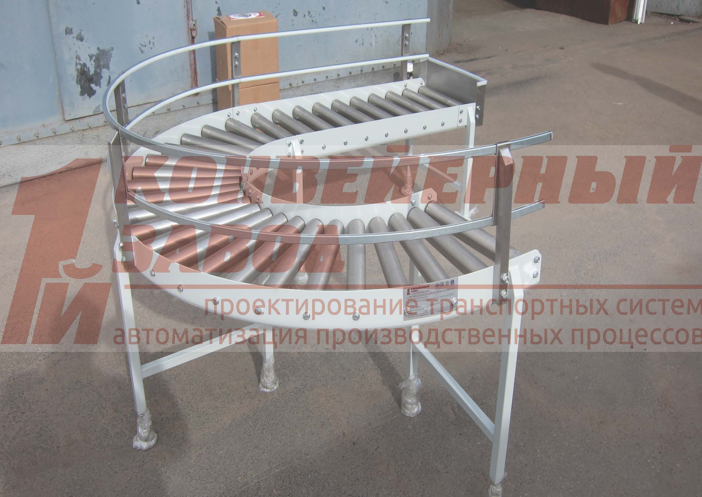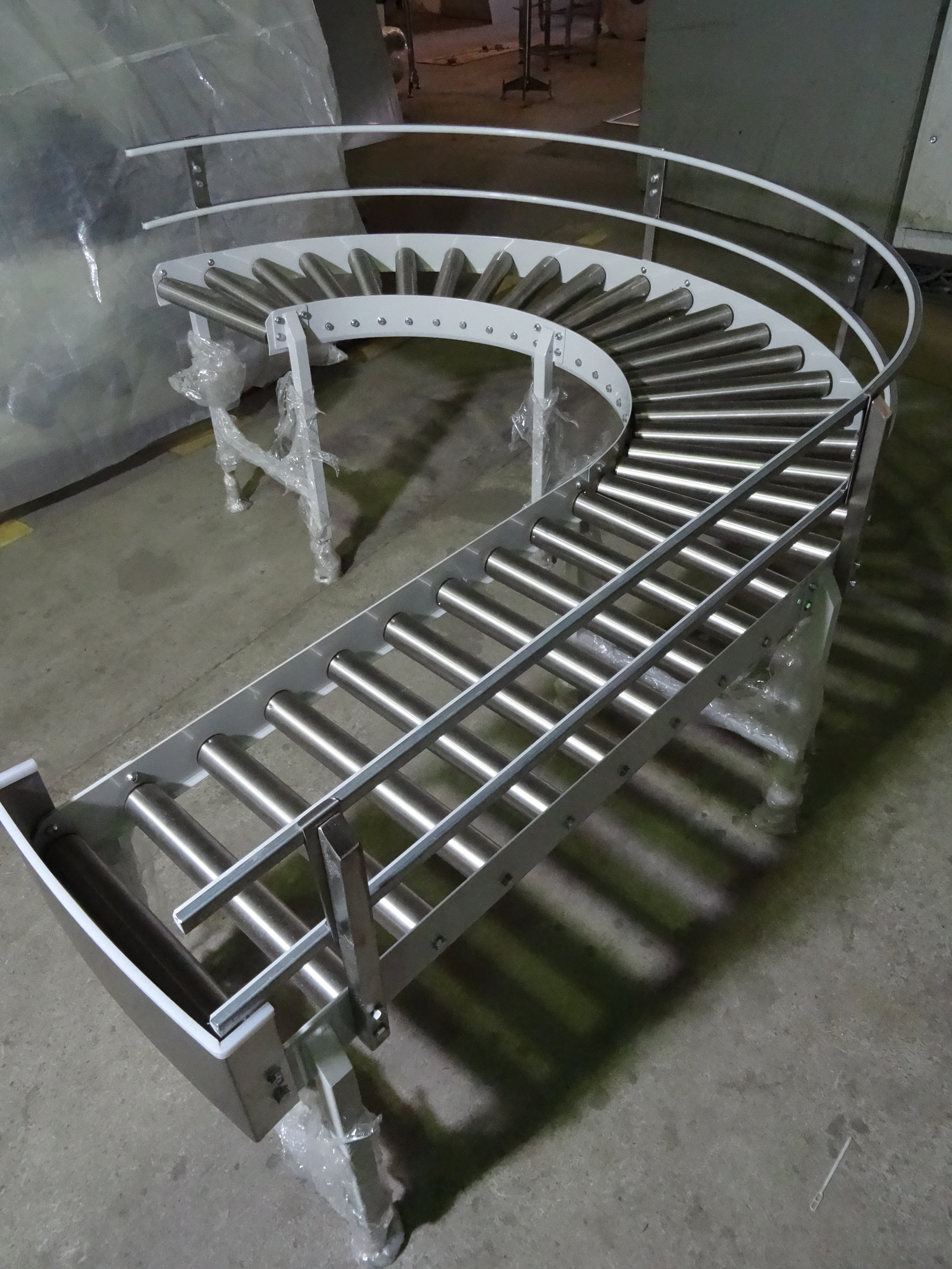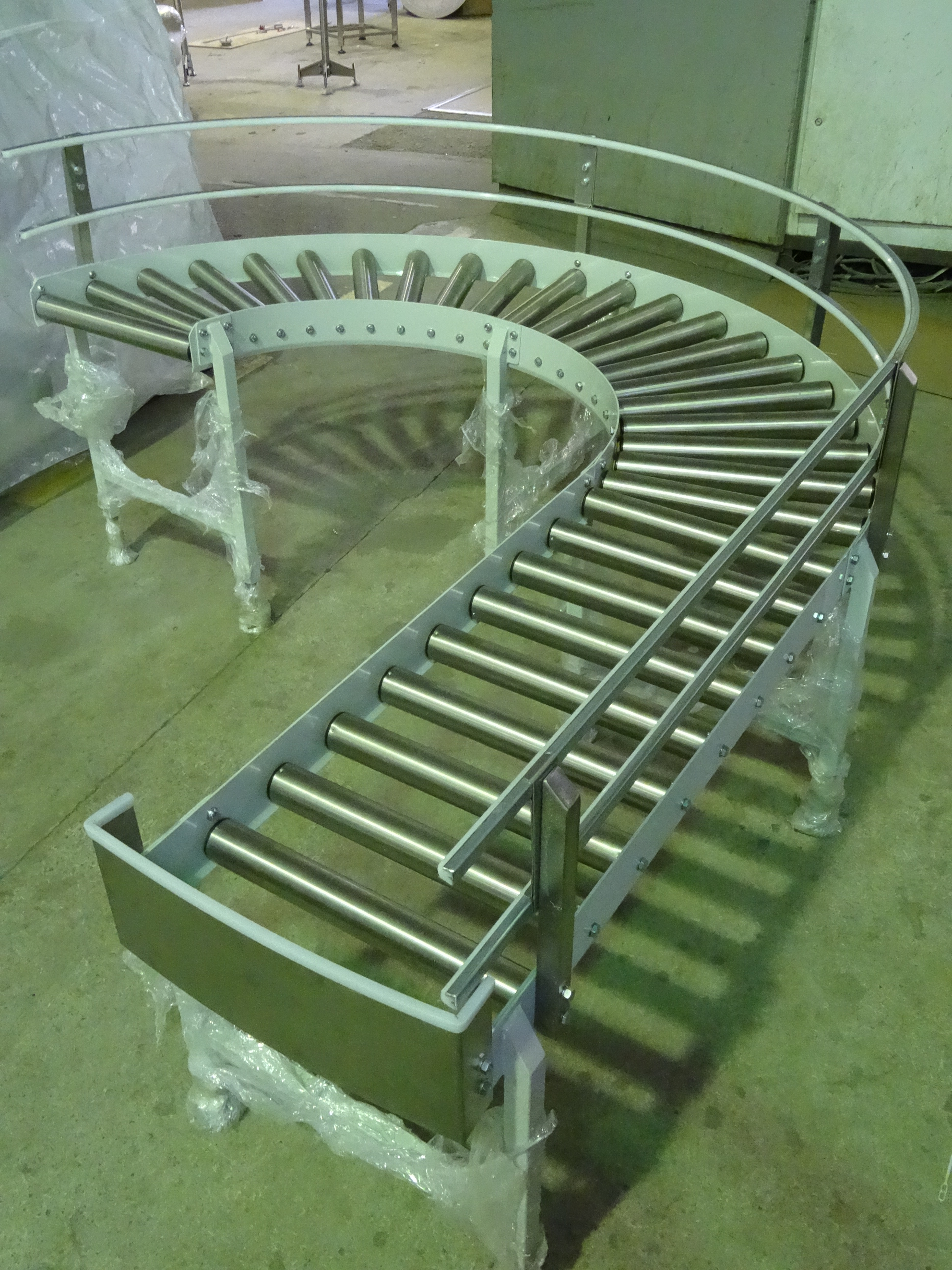 Описание проекта: Для ведущей компании, производящей лакокрасочную продукцию, изготовлен неприводной поворотный рольганг. Рольганг будет находится в конце технологической цепочки и служить для перемещения и накопления банок с краской разного размера. Материал рольганга - углеродистая сталь с порошковой окраской, материал роликов - нержавеющая сталь, длина роликов - 400мм, диаметр роликов 50мм, регулируемые кронштейны ограждения с внешней стороны.