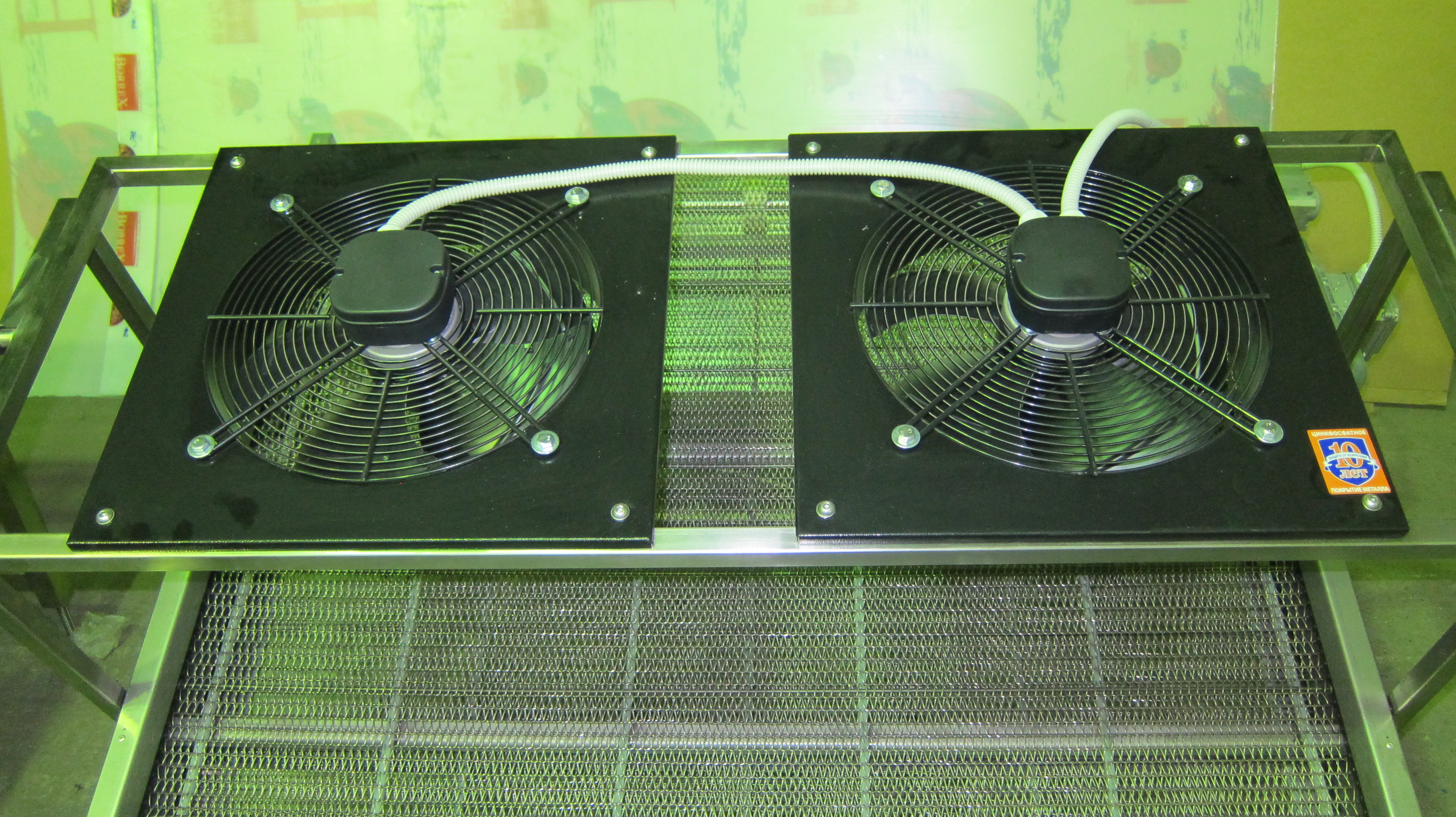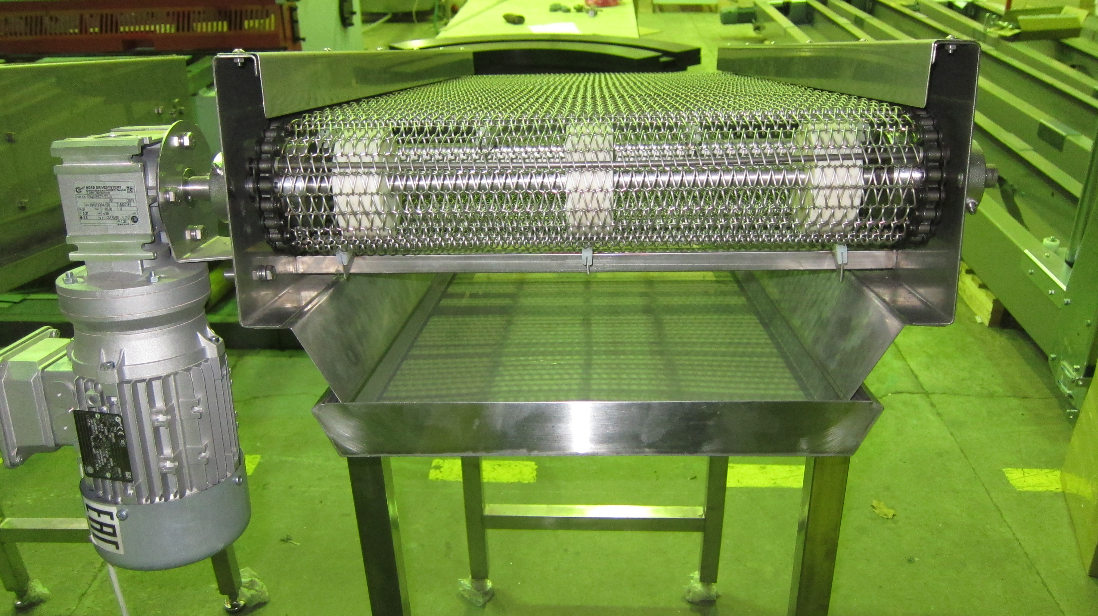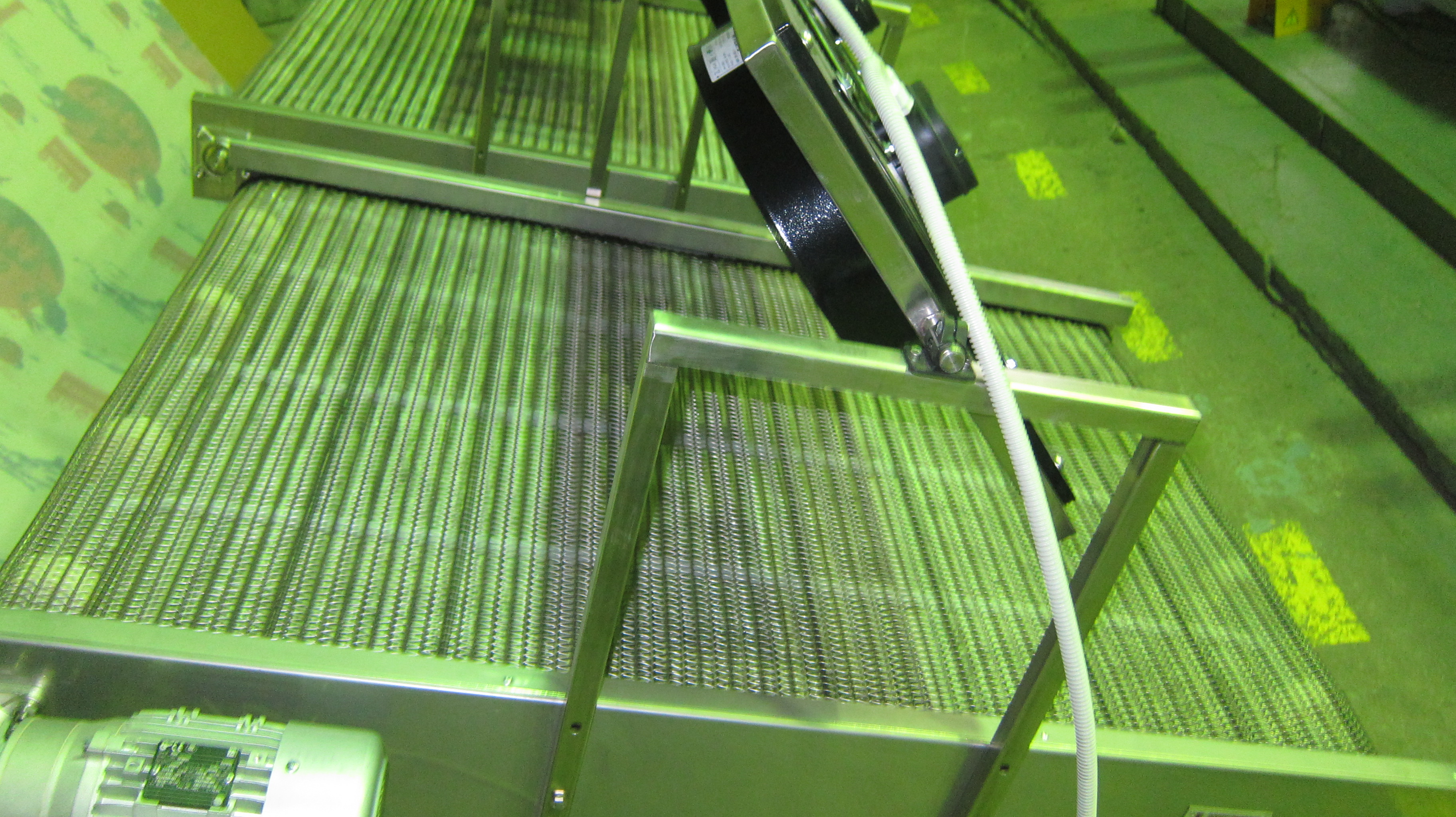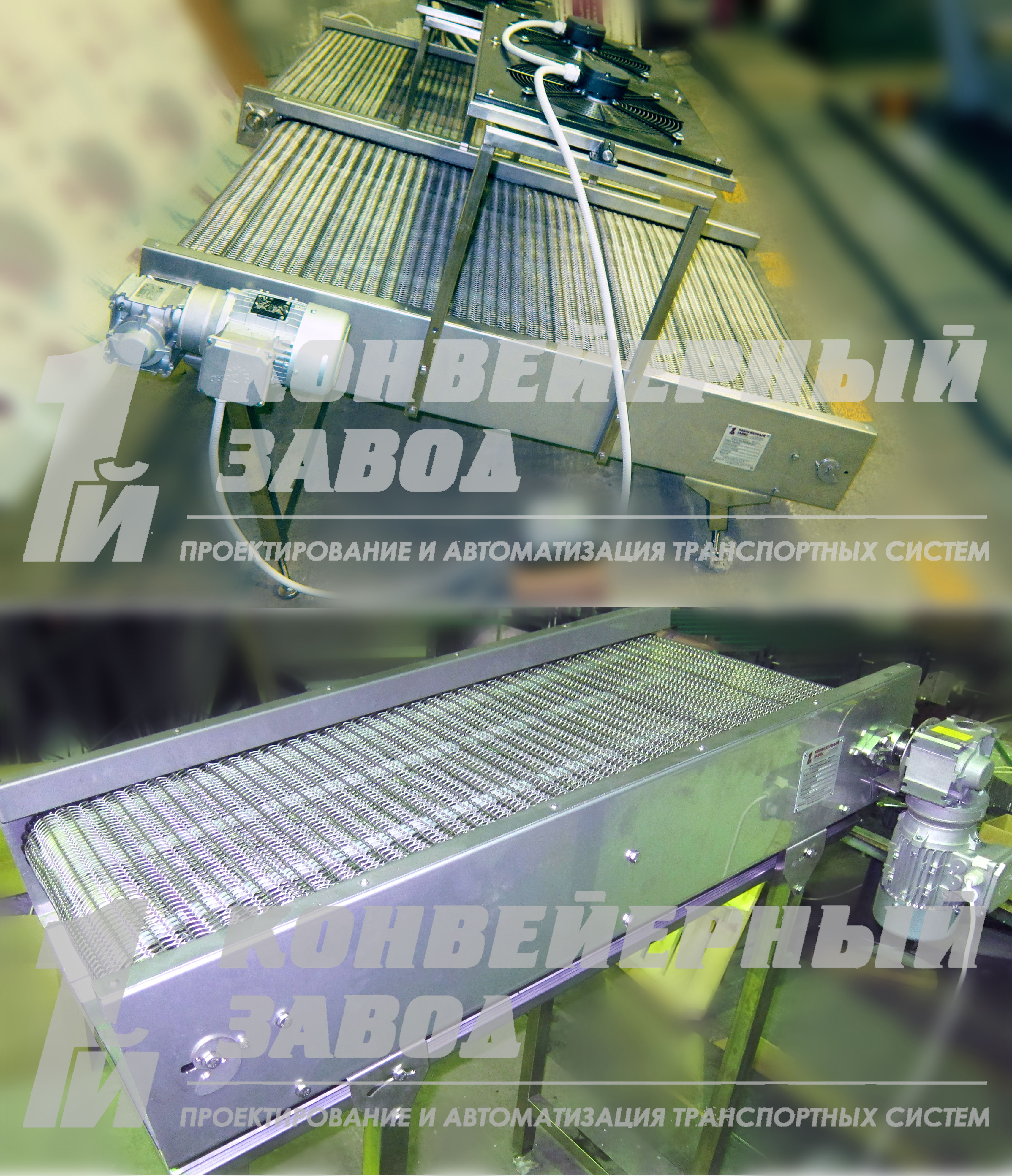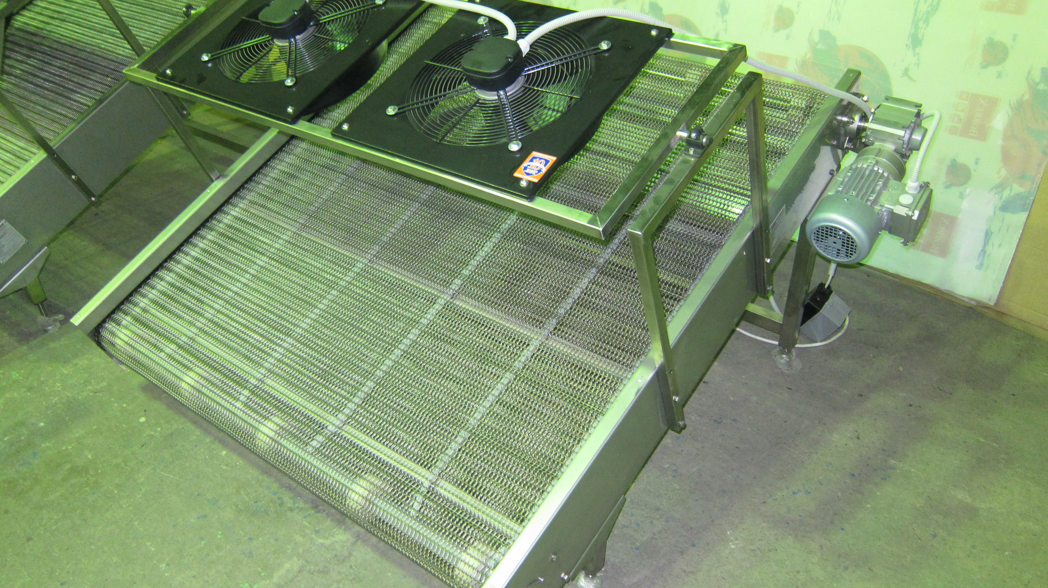 Описание проекта: Третья часть большой конвейерной системы по перемещению хлебных изделий состоит из 4-х конвейеров с металлической сеткой. Для дополнительного охлаждения хлебных изделий на 2-х конвейерах дополнительно установлены 2 вентилятора. Ширина сетки 500, 1200 и 1300мм. Все конвейеры и сетка изготовлены из нержавеющей стали. Привода 0,37 кВт (Германия)