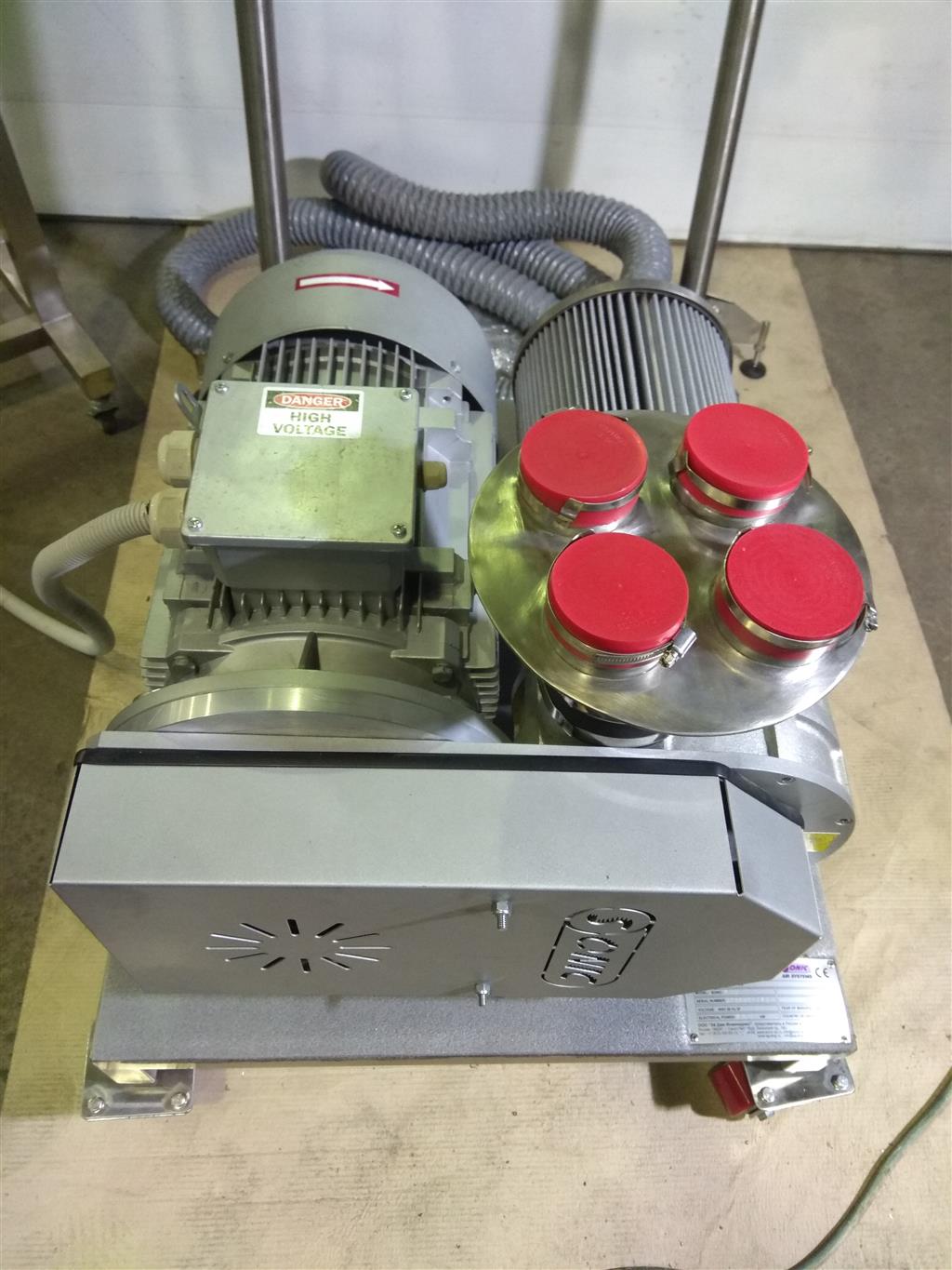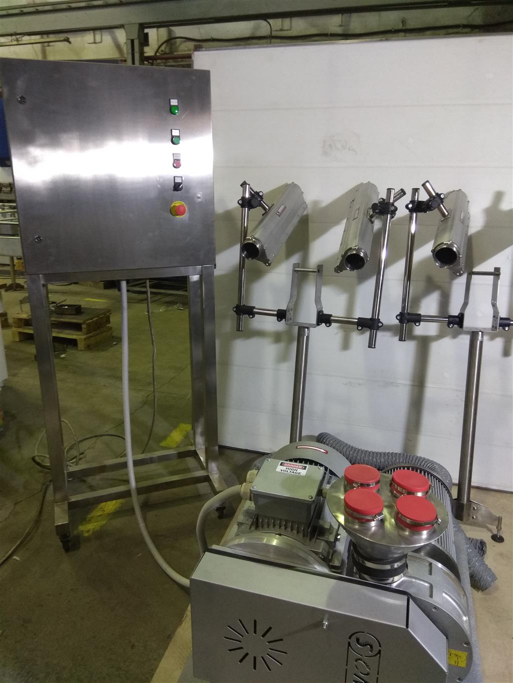 Описание проекта: Заказчику отгружен очередной Осушитель Поверхности Sonic Air Systems.В комплект поставки входит:Турбовентилятор Sonic Air центробежный вентилятор Модель Sonic 150 оснащенный мотором 18,5 кВт 400В 50Гц 3ф. (расход воздуха до 2124 м?/час);Рама, несущая из нержавеющей стали для установки Турбовентилятора с поворотными колесами или регулируемыми опорами покрытая слоем акустической изоляции.Воздушный нож длинной 600 мм - 4 шт.Фильтр в сборе с корпусом и переходниками, гибкими соединительными и крепежными элементами.Набор воздуховодов (комплект из гибких шлангов, переходников и разветвителей потоков, гибких соединительных и крепежных элементов);Набор монтажных креплений для установки воздушных ножей на конвейер, корпус или стол с возможностью гибкой настройки позиционирования и регулировки по 5 осям (комплект из нержавеющих стоек и перекладин, и элементов фиксирующих опор и соединений для гибкой регулировки и позиционирования.);