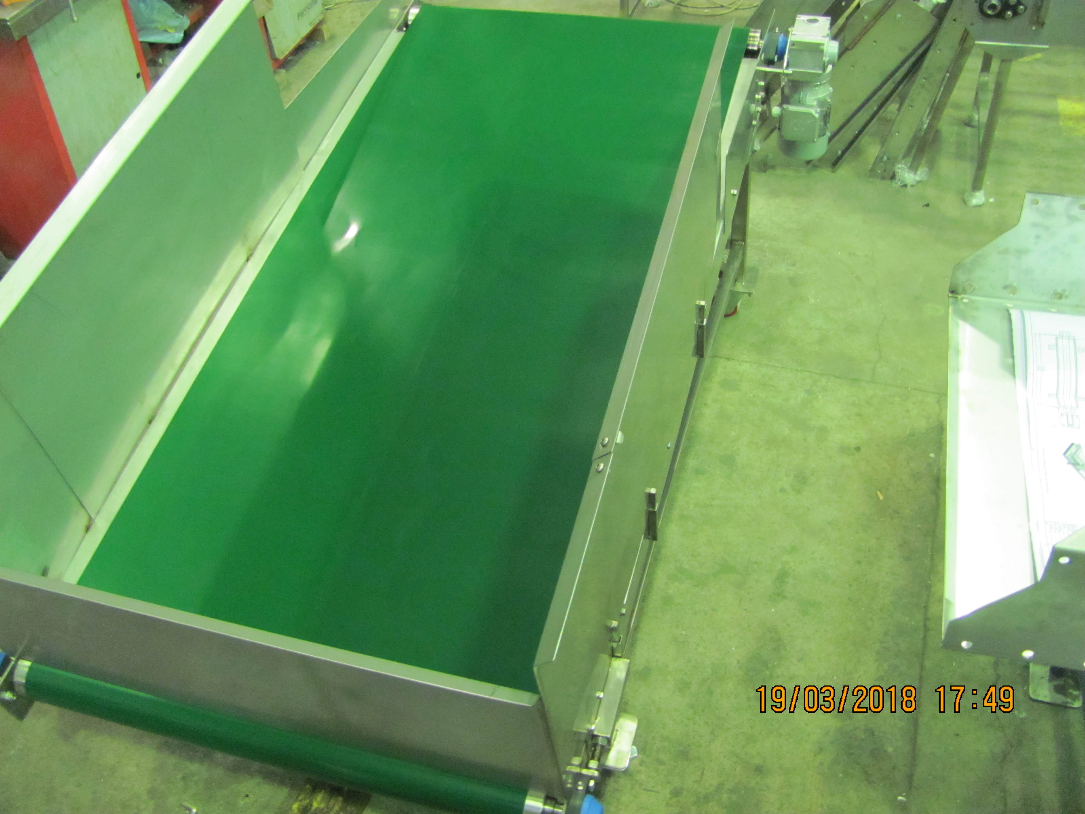 Описание проекта: Для крупного производителя строительных смесей и утеплителя был изготовлен и введен в эксплуатацию передвижной конвейер для перемещения пенополистерола.Технические данные:длина - 2000 мм,высота - 400-700 мм,ширина ленты - 900 мм,опоры цельные пластиковые на подшипниках,скорость движения - 10 м/минматериал конструкции - нерж. сталь,усиленная конструкция,быстросъемные ограждения с 3-х сторон.