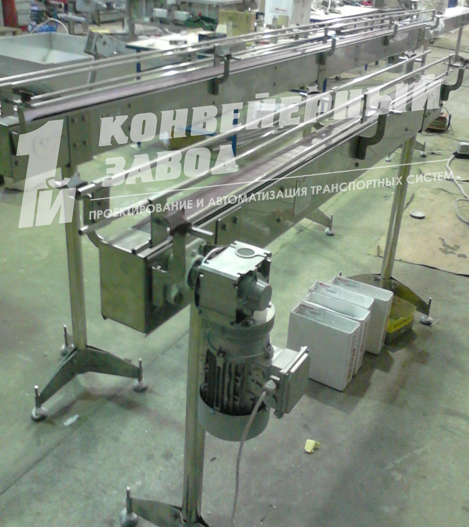 Описание проекта: Отгружены несколько пластинчатых конвейеров для перемещения банок с майонезом и кетчупом. Все конвейеры, опоры, кронштейны изготовлены из нержавеющей стали.Цепь пластиковая шириной 82,5мм фирменного цвета "бордо" (Италия). Приводы 0,37 кВт (Германия)Компания готова производить различные виды конвейеров, любой степени сложности и конфигурации.Все комплектующие только Европейских производителей (Италия, Германия, Голландия, Испания)