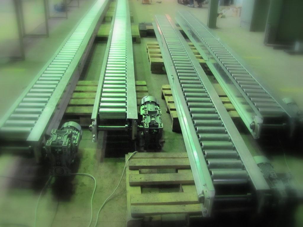 Описание проекта: Изготовлены 4 приводные рольганга для транспортировки контейнеров с птицей. Длины рольгангов 5,5 и 11 метров. рольганги изготовлены из оцинкованной стали толщиной 3 мм.Использованы приводные оцинкованные ролики с шагом 100 мм, диаметром 89 мм и длиной 200 мм (Италия), привода мощностью 0,55 и 1,1 кВт (Италия). Общее количество роликов - 330 шт. Рольганги поставлены заказчику без опор. Вес контейнера с птицей 1100 кг.
