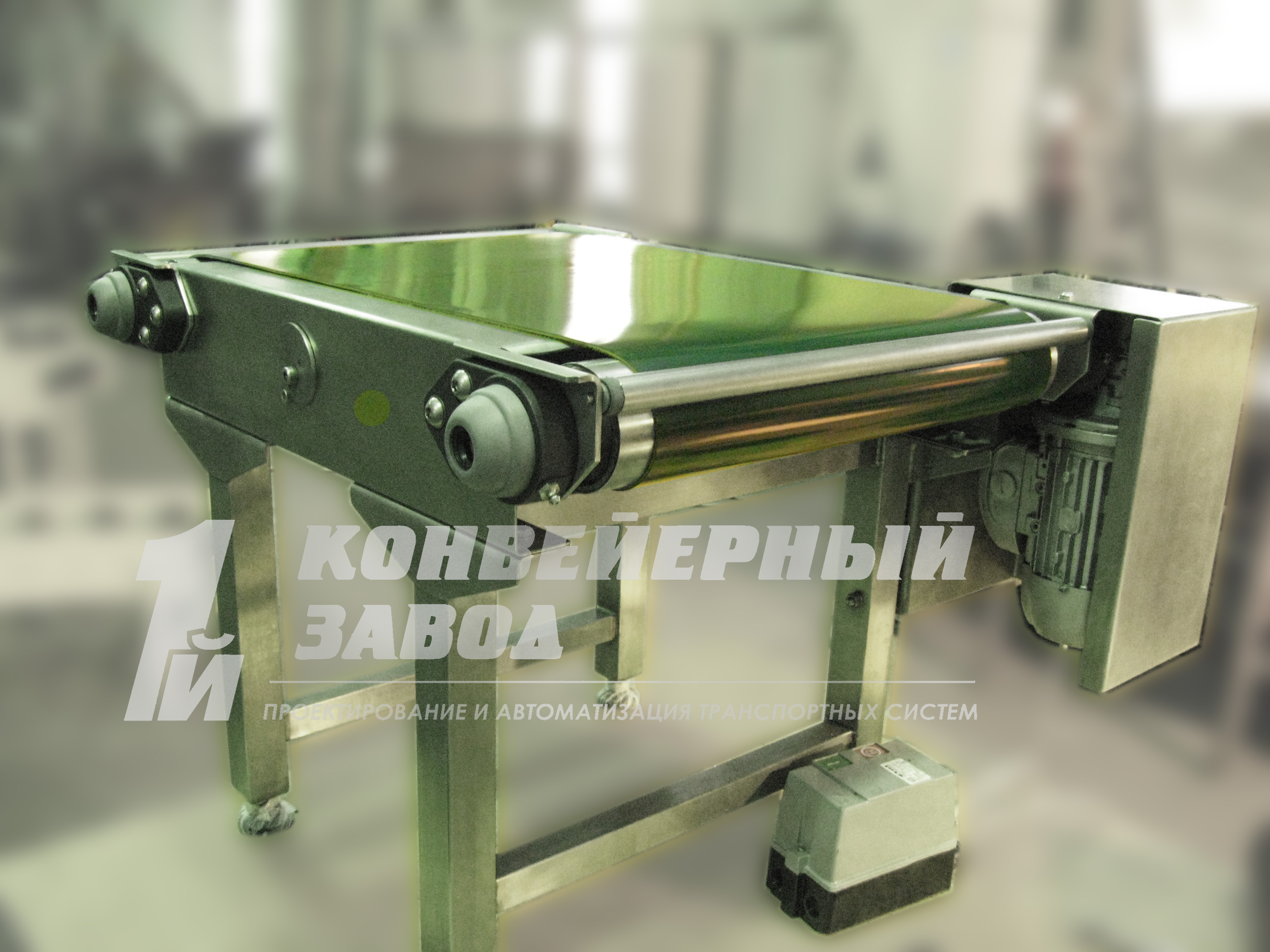 Описание проекта: По специальному заказу за короткое время (7 дней), изготовлен разгонный ленточный конвейер. Конвейер устанавливается в технологической цепочке на производстве для перемещения гофрокороба с продукцией. Длина конвейера 700мм, ширина ленты ПВХ 400мм, скорость движения ленты 20 м/мин, два переходных ролика O20мм с двух сторон конвейера, привод 0,18 кВт(Европа) в защитном кожухе, конвейер изготовлен из нержавеющей стали.