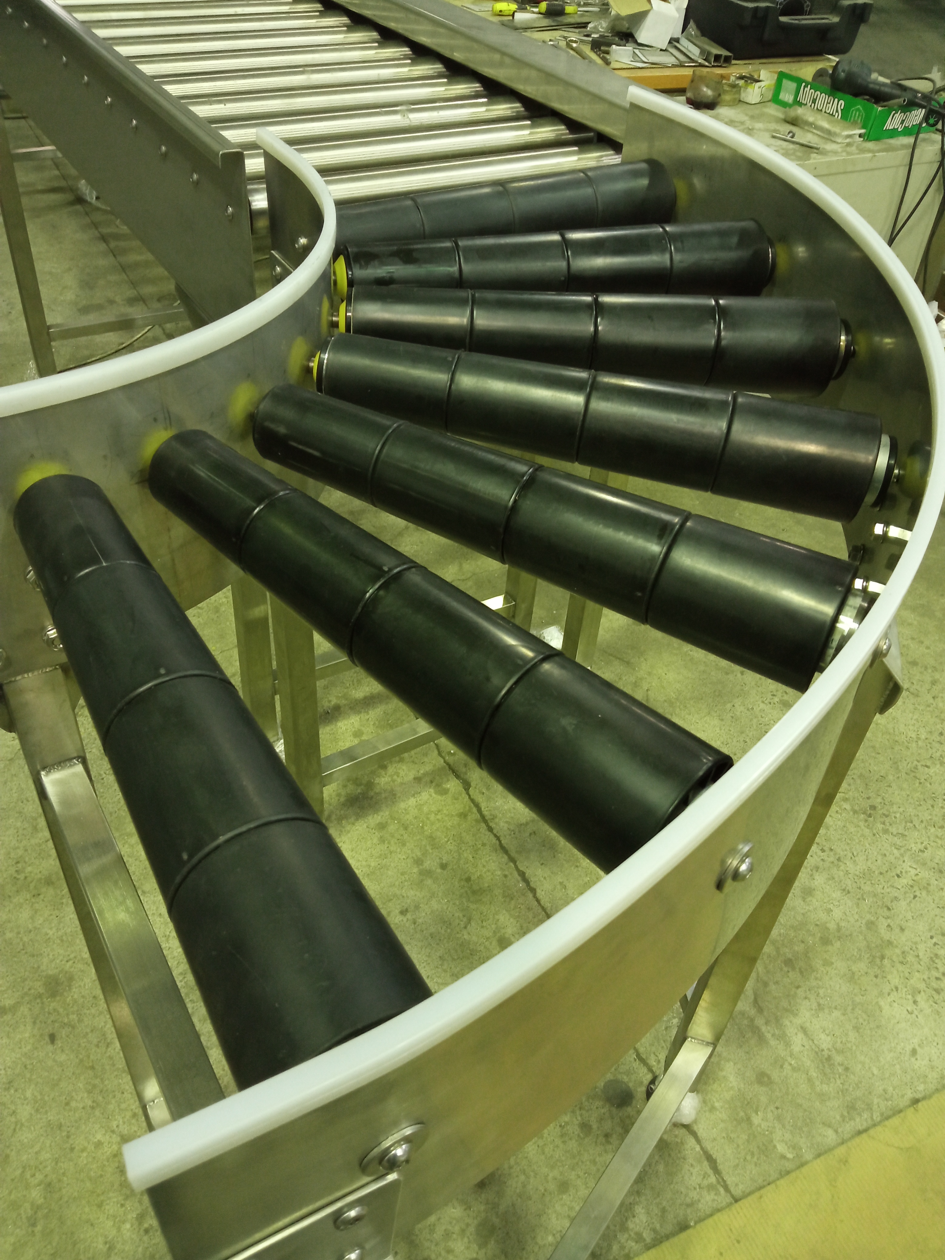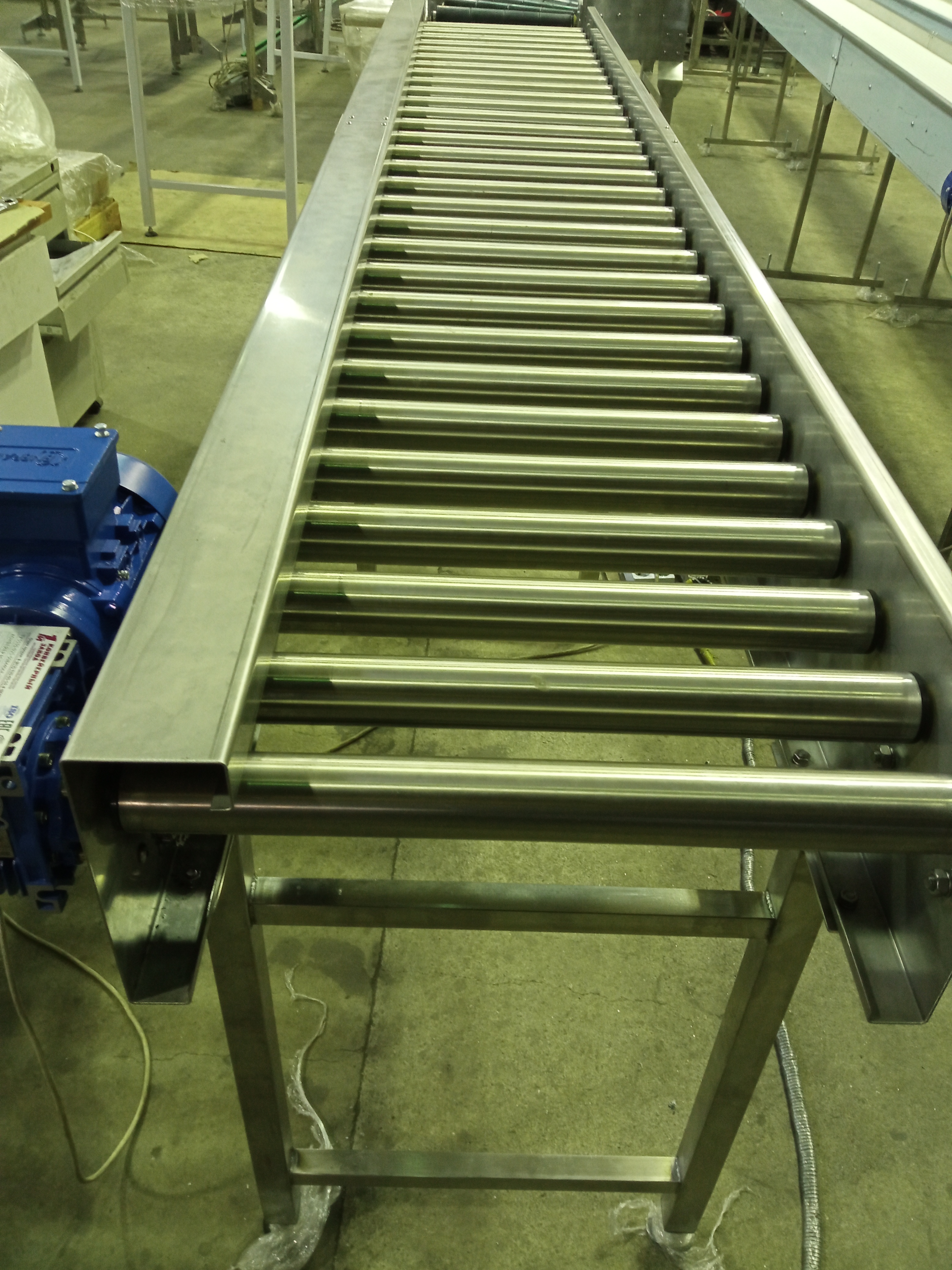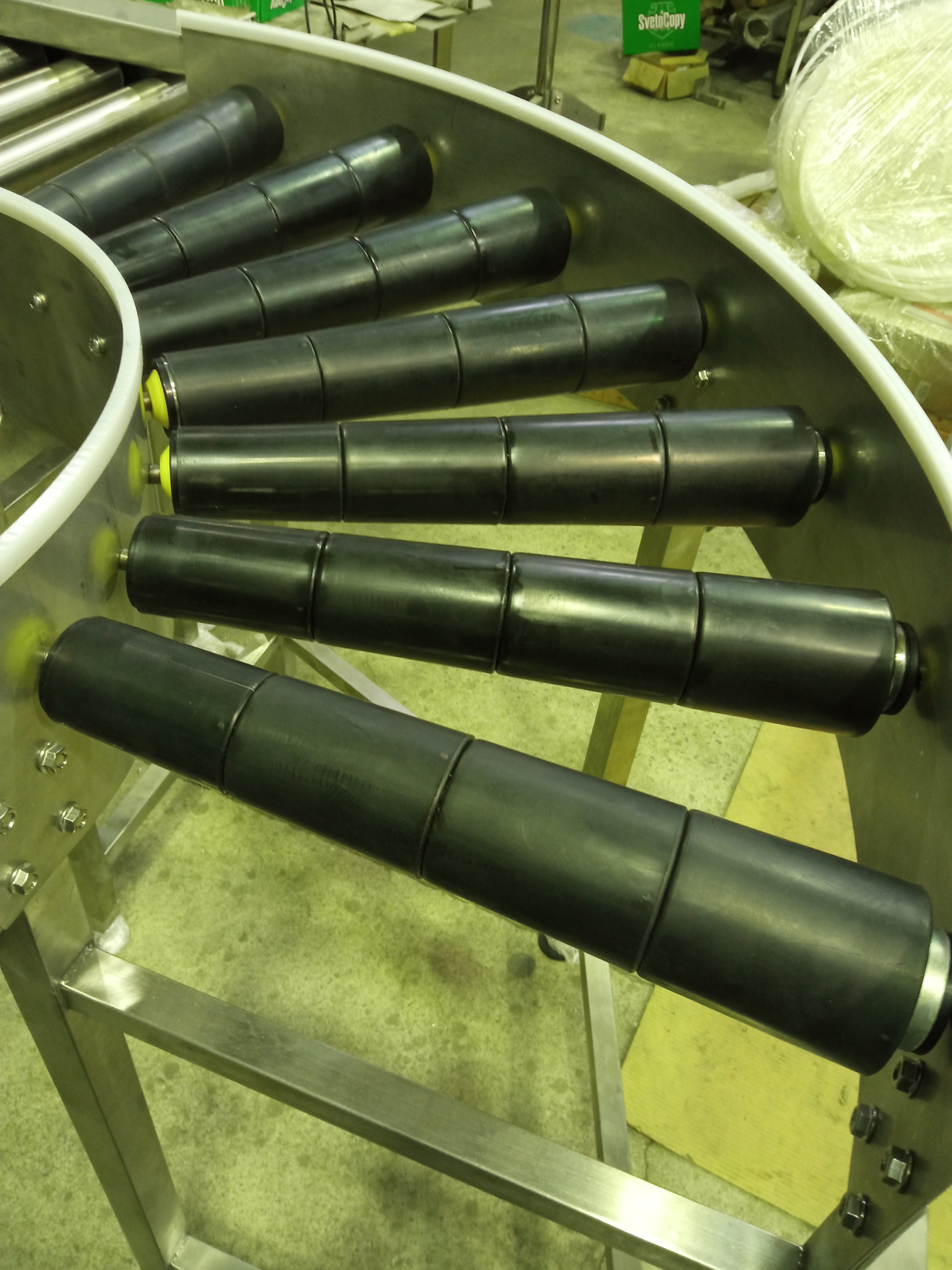 Описание проекта: Для перемещения кеги на пивоваренном заводе, изготовлены 2 рольганга. Один неприводной рольганг поворотный на 90? с пластиковыми коническими роликами длиной 490 мм, второй прямой приводной рольганг длиной 3000 мм, с длиной роликов 490 мм. Материал рольгангов - нержавеющая сталь, перемещаемый груз - кега ? 400 мм, вес кеги 65 кг, привод 0,37 кВт (NMRW)