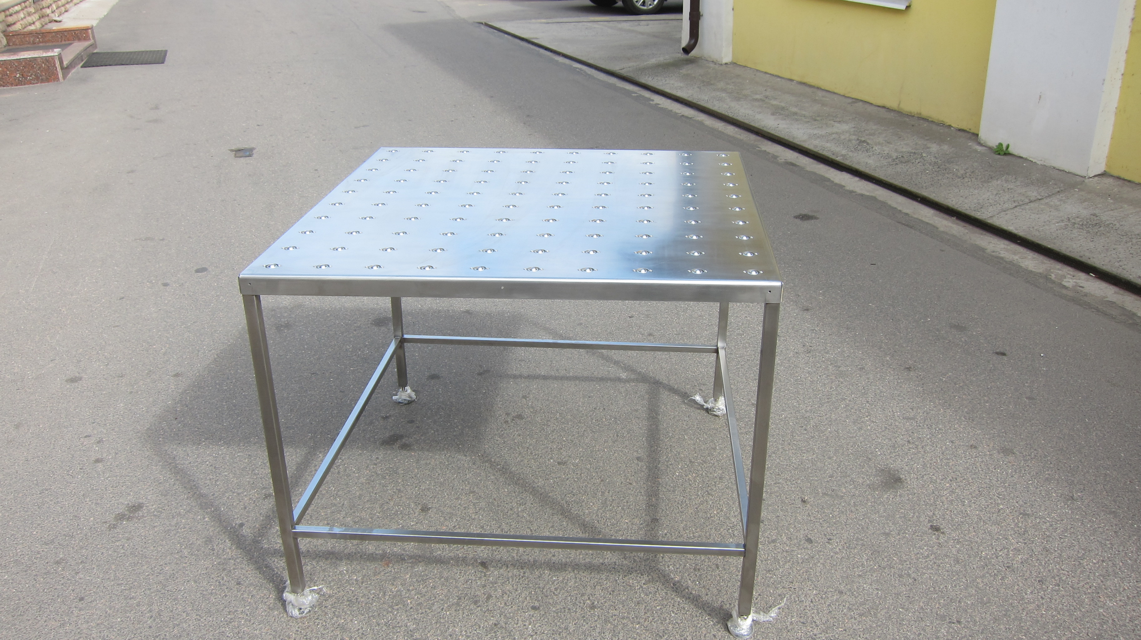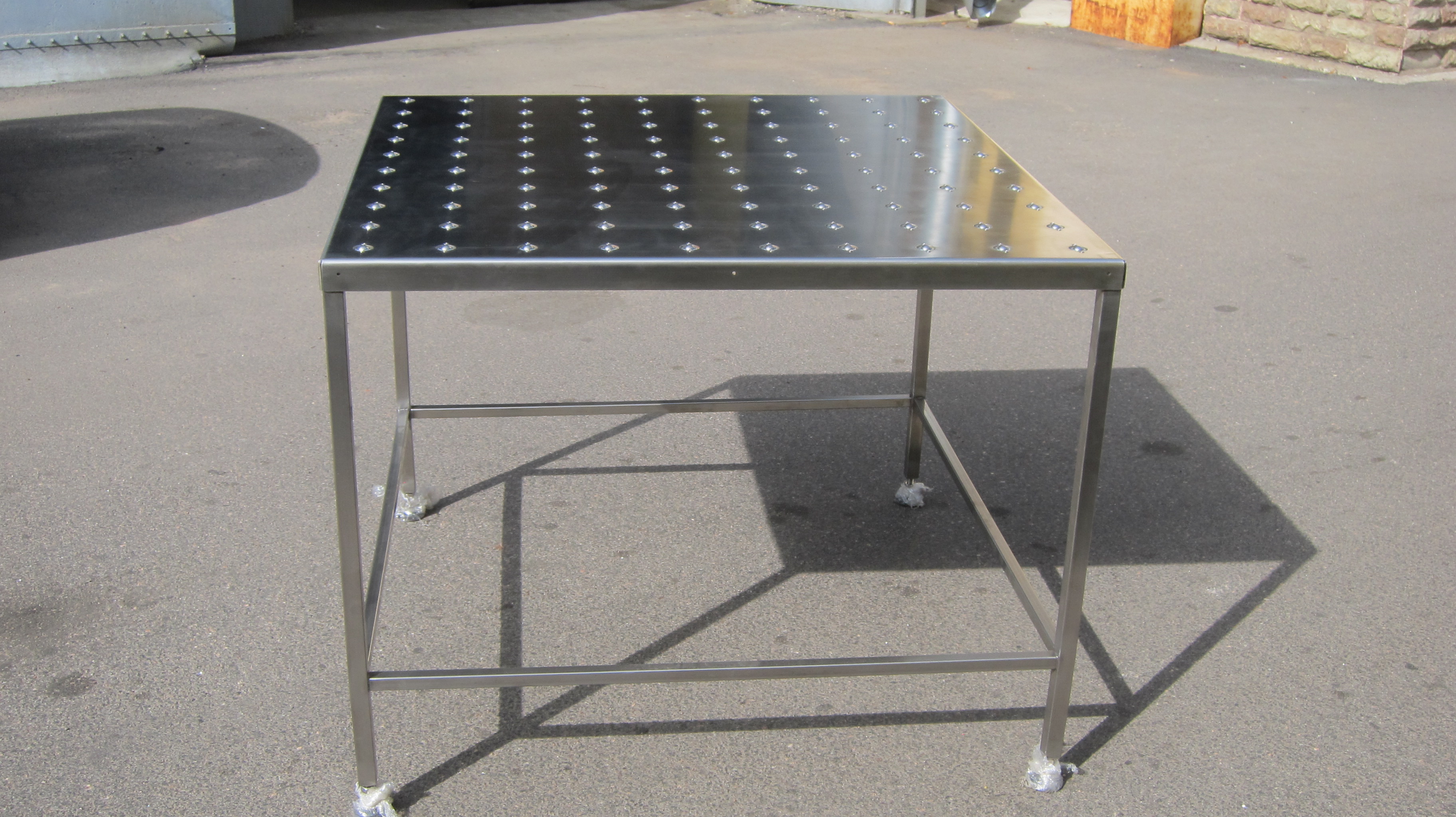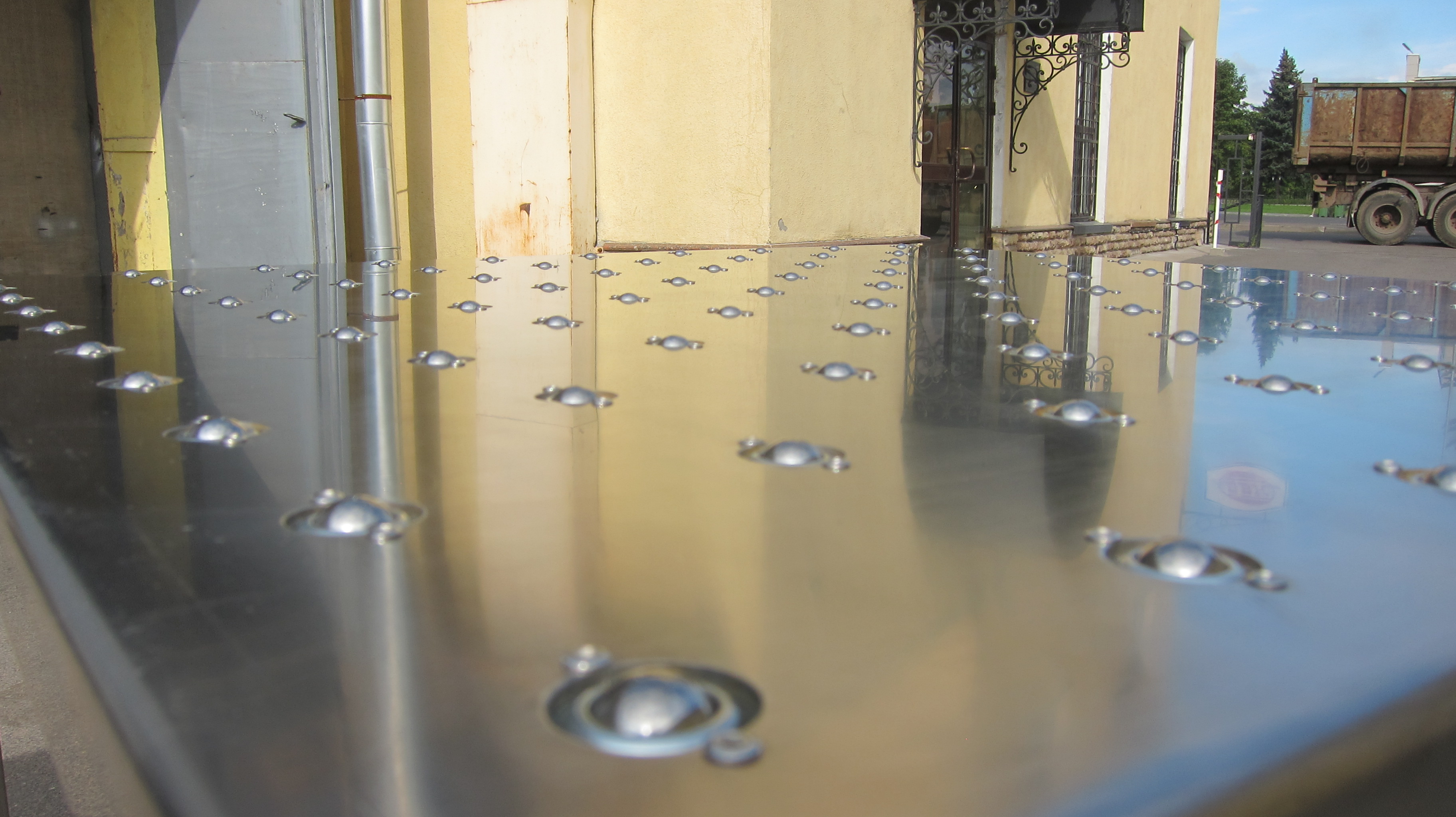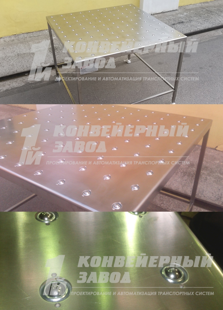 Описание проекта: Изготовлен новый вид оборудования, который пользуется спросом у компаний занимающихся упаковкой и сортировкой продукции. Коробку или упаковку на столе легко повернуть, развернуть или направить в любую сторону не прикладывая больших усилий.шариковый стол изготовлен из нержавеющей стали,;размеры стола 1000мм*1000мм,;общее количество шариковых опор 100шт,;вес перемещаемой упаковки до 50 кг.Компания готова изготовить данный вид оборудования по любым размерам Заказчика.