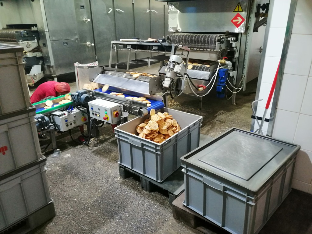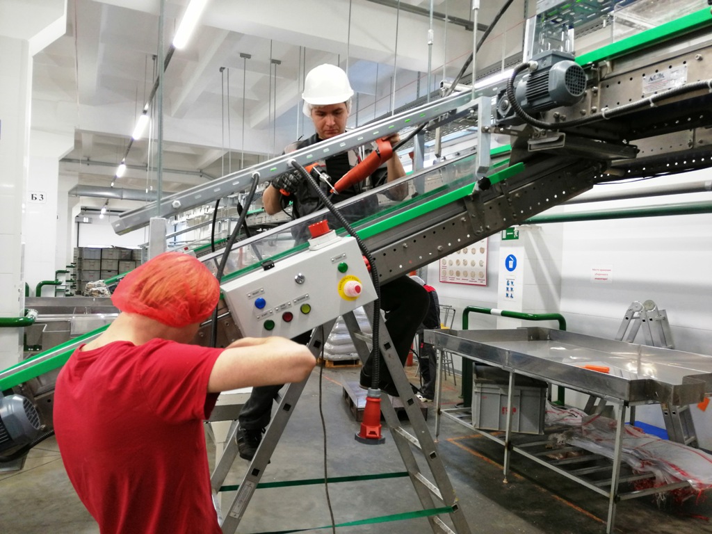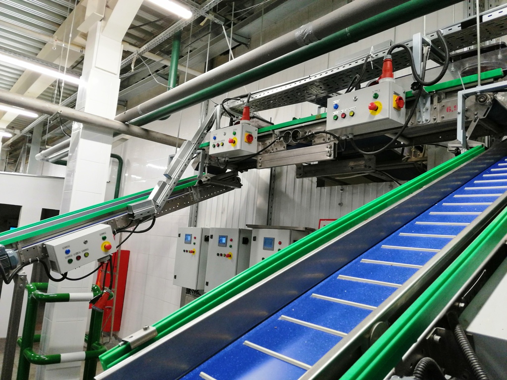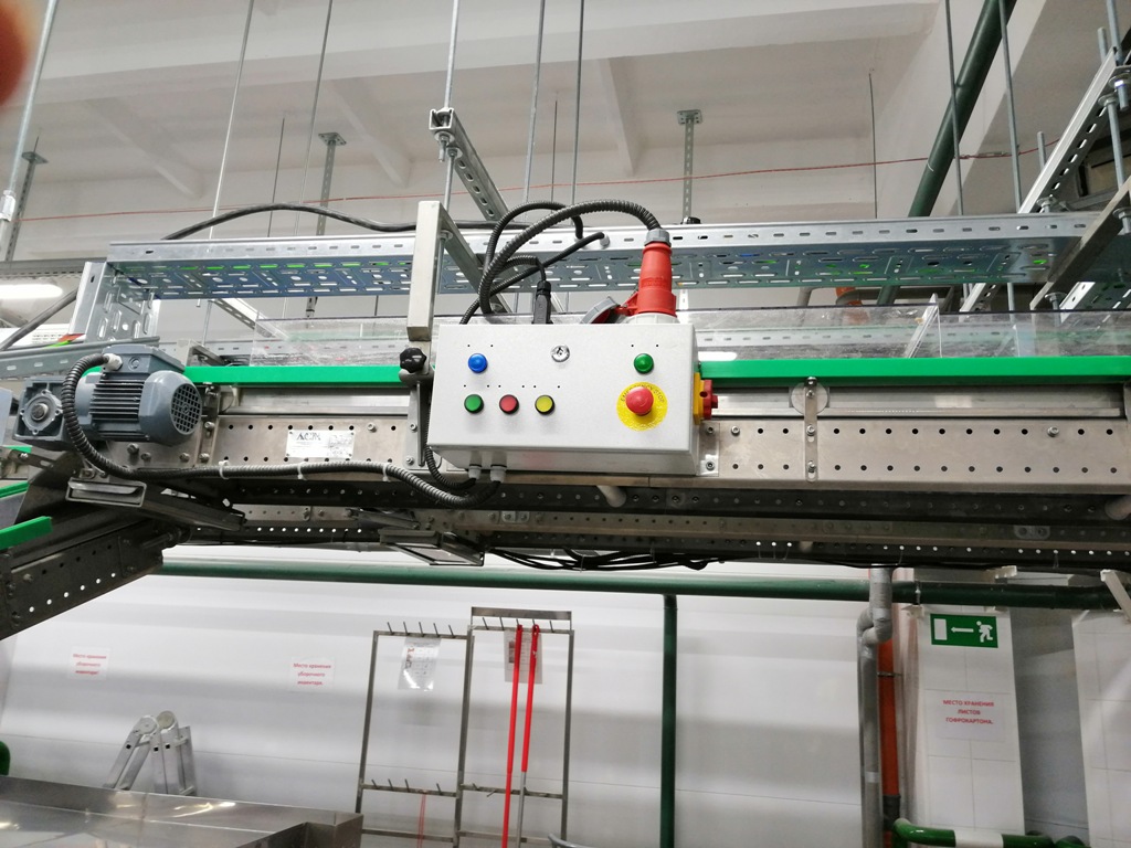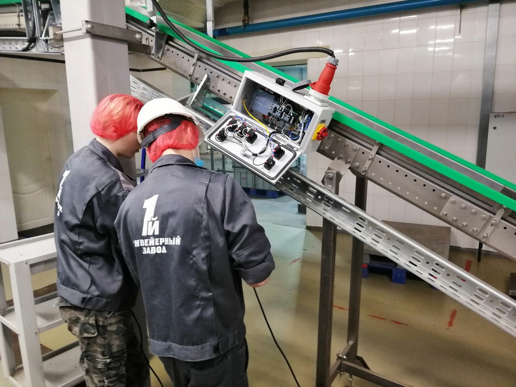 Описание проекта: Завершен монтаж и пуско-наладка систем автоматики 10-ти конвейерных линий на заводе по производству хлебцев из зернопродуктов.Смонтировано более 120 шкафов управления ленточными конвейерами, контроллеры шкафов управления отслеживают состояние конвейером и передают данные на шкаф управления линией.10 шкафов управления конвейерными линиями позволяют настраивать алгоритмы работы каждого конвейера в линии, включать и отключать контроль вращения, старт, стоп как отдельного конвейера в линии, так и всей линии в целом, программировать включение реверса на отдельном конвейере или на группе конвейеров при возникновении заторов перемещения продуктов.Два шкафа управления взаимодействуют с упаковочными машинами - при переполнении машин конвейерная линия приостанавливается, мгновенно запускается по сигналу упаковывающей машины.Смонтирован центральный пульт управления всеми линиями, который повторяет функциональные возможности шкафов управления линиями и имеет дополнительные функции:двухмерную (2D) схему всех линий завода с отображением состояния каждого конвейера и линии в целом;трехмерную (3D) схему всех линий завода с отображением состояния каждого конвейера и линии в целом.
