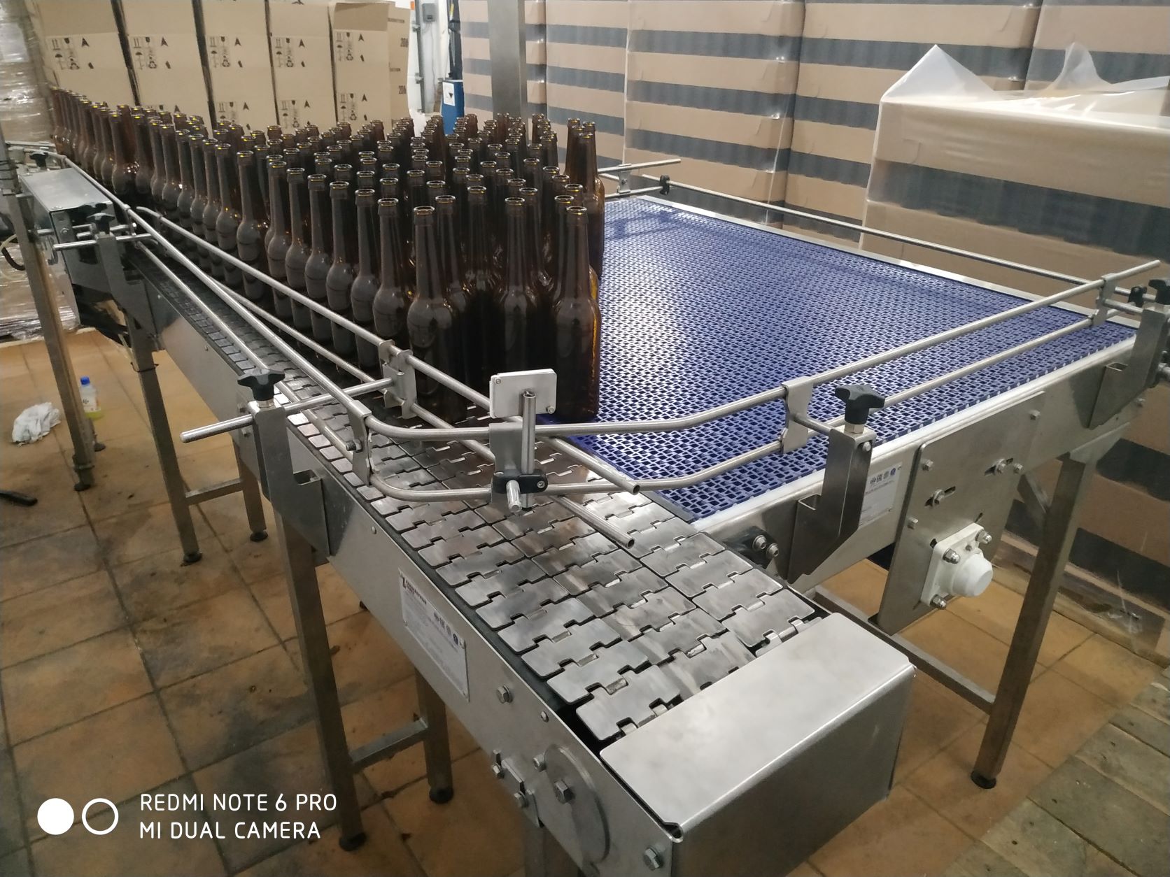 Описание проекта: Осуществлена поставка конвейерной системы для линии розлива пива. В состав входит следующее оборудование:1. Полуавтоматический депаллетайзер.2. Подающий прямоугольный стол выдачи бутылок.3. Система пластинчатых конвейеров с нержавеющей цепью.4. Круглый накопительный стол.5. Система Осушения Поверхности Sonic