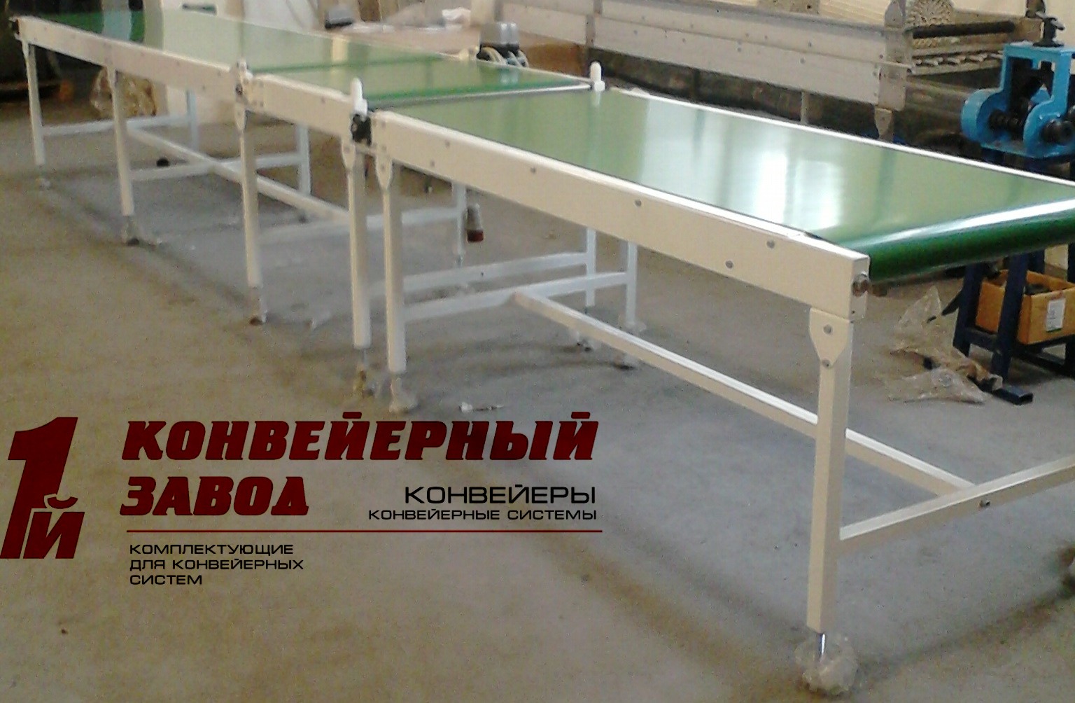 Описание проекта: Для нашего постоянного Заказчика, изготовлена система ленточных конвейеров. Система состоит из 3-х последовательно стоящих конвейеров, при этом, конвейер расположенный в середине может быть поднят вертикально, для прохода персонала к оборудованию.Длина конвейеров - 3000мм, 700мм и 1850мм.Ширина ленты ПВХ - 800мм.Материал конвейеров - углеродистая сталь с порошковой окраской.Привода 0,37 и 0,55 кВт (Италия);