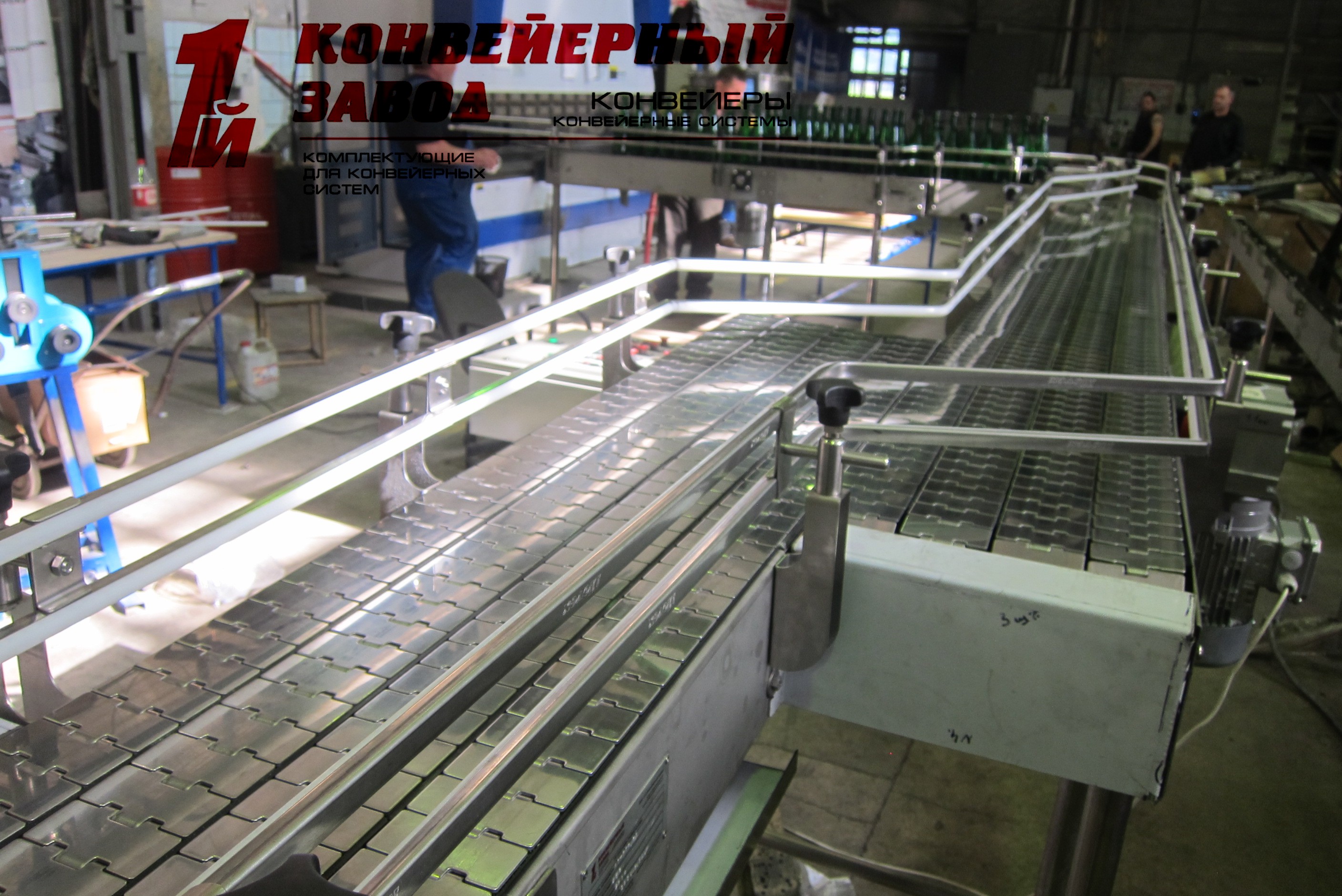 Описание проекта: Нашему постоянному заказчику - крупнейшему пивзаводу Республики Казахстан, отгружена система пластинчатых конвейеров. Конвейера предназначены для перемещения стеклянной бутылки от участка депалетизации до розлива. Система состоит из многорядных пластинчатых конвейеров в фирменном исполнении нашего завода:кронштейны собственного изготовления;треноги и двуноги собственного изготовления;высококачественное пластиковое ограждение в металлической основе;мотор-редуктора из Германии;нержавеющая цепь мирового лидера;Вся конвейерная система и фурнитура - из нержавеющей стали.Общая длина цепи - более 250 метров.