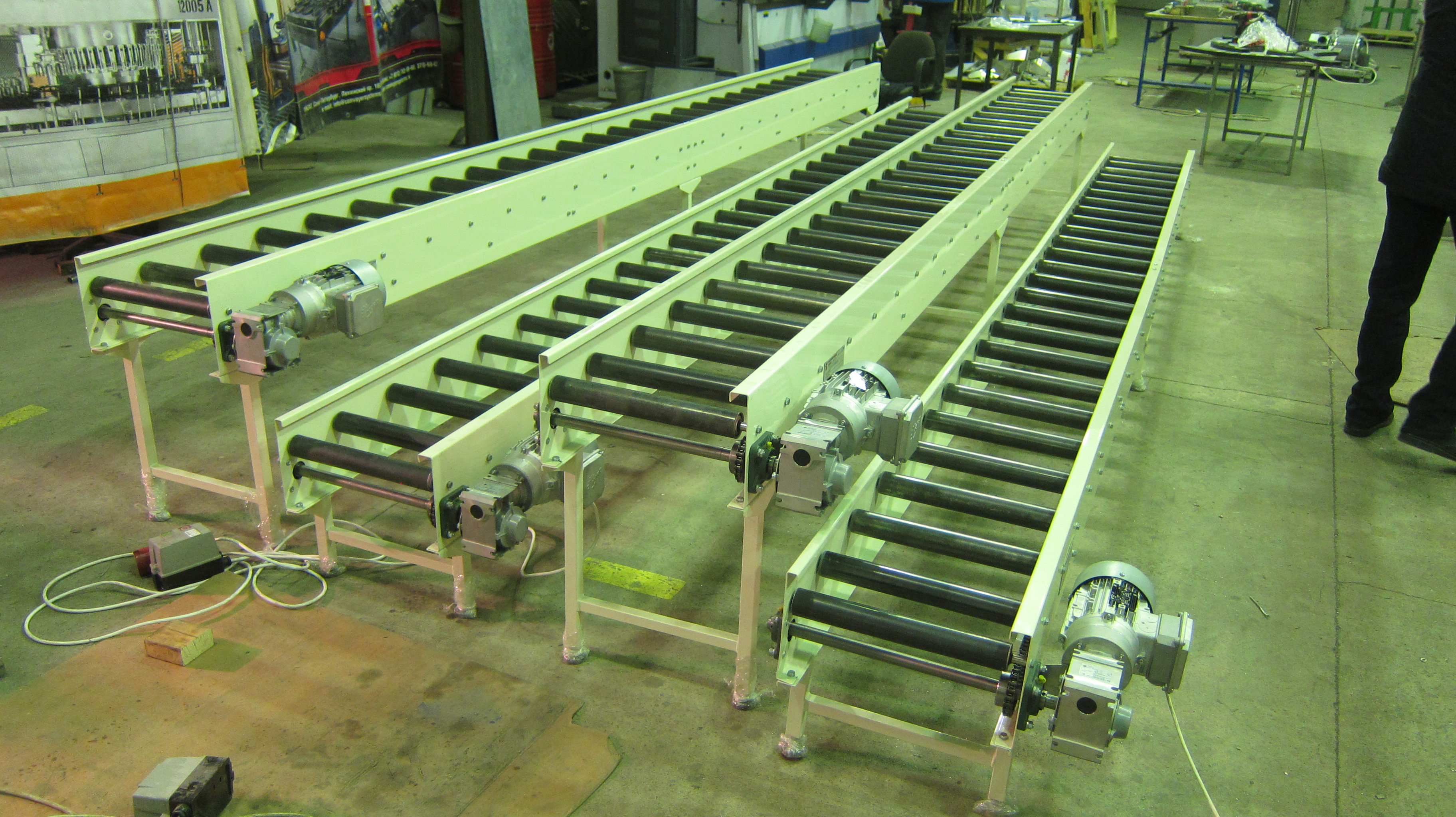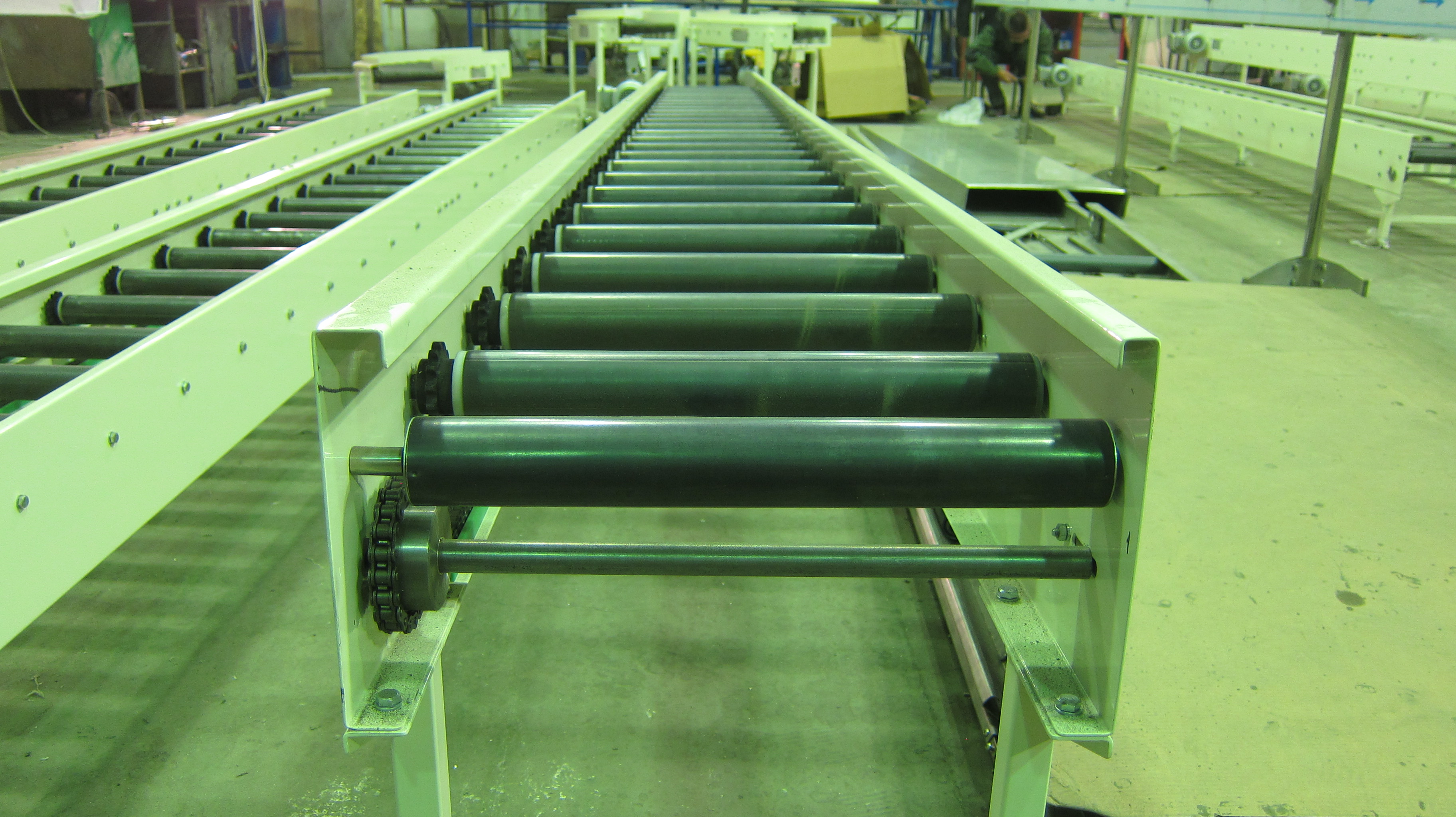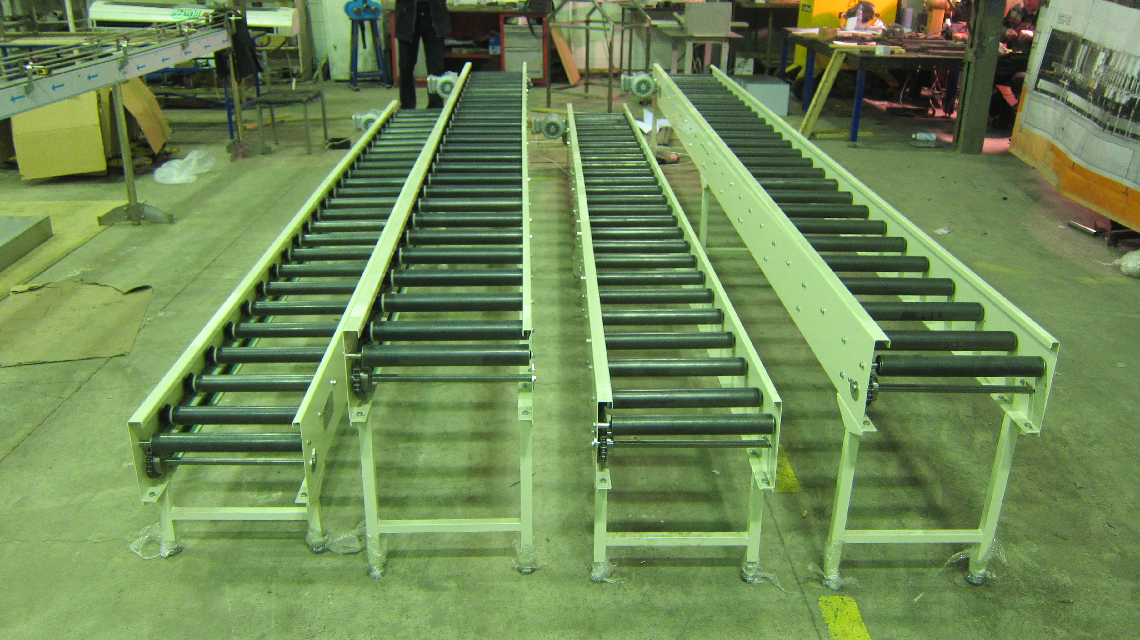 Описание проекта: Для птицефабрики изготовлены 12 роликовых конвейеров для перемещения коробок с яйцами.7 приводных прямых рольгангов длиной 5000 мм, 3 приводных поворотных секции на 90? и 2 не приводных рольганга длиной 1500 мм. Длина роликов 380 мм, материал роликов – углеродистая сталь, конструкция рольгангов – углеродистая сталь с порошковой окраской цвета «слоновая кость», приводы 0,37 кВт и 0,55 кВт (Германия), скорость вращения роликов - 7 м/мин.*На фотографиях размещены лишь некоторые из них