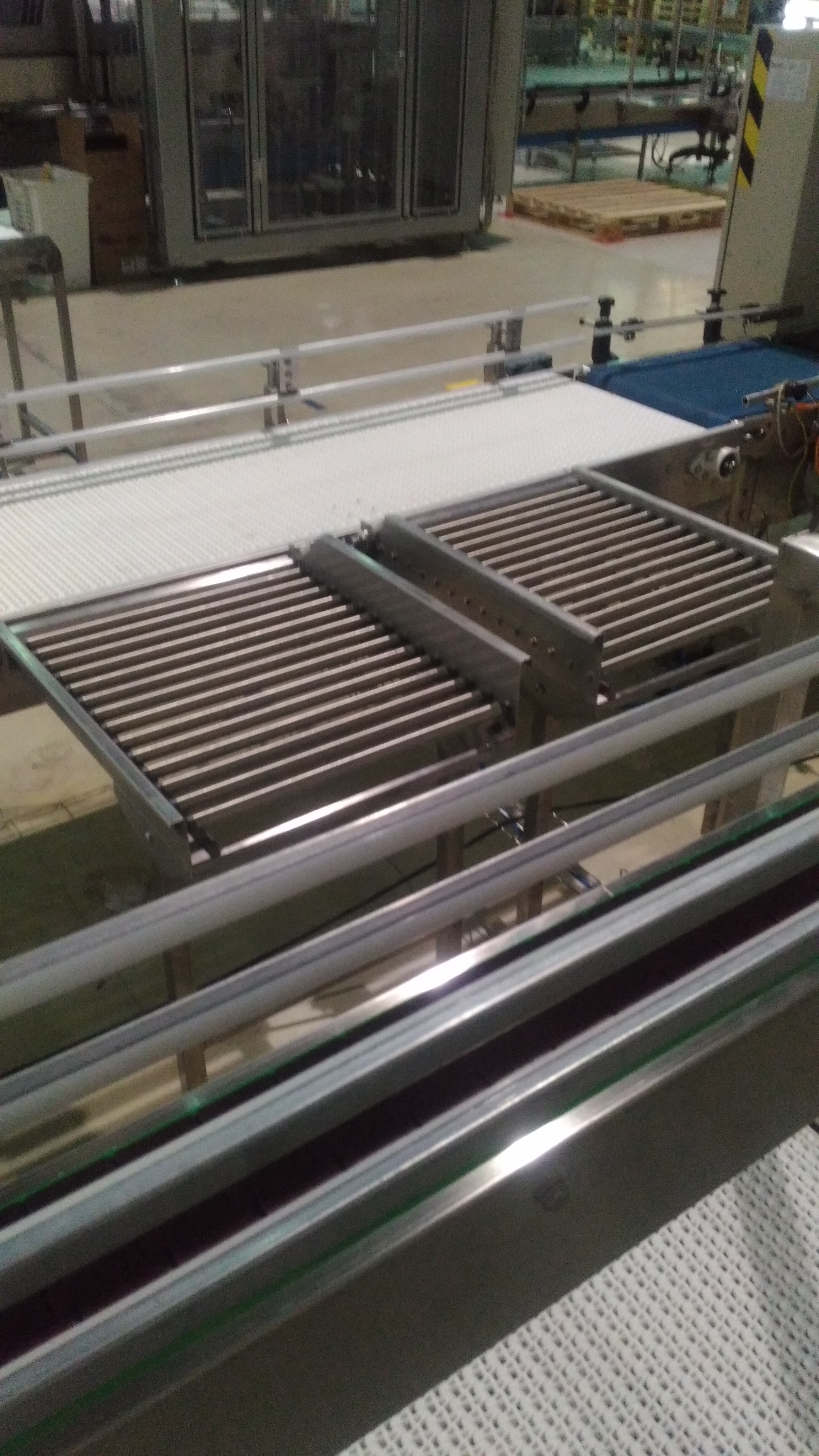 Описание проекта: Изготовлен и введен в эксплуатацию участок отбраковки для ЛВЗ.Состав участка:1. Рольганг приводной. Длинна 700 мм. Ширина 600 мм. Высота 640 мм. Борта 100 мм регулируемые по высоте и по ширинеМатериал - нержавеющая сталь. Перемещаемый продукт короба различных размеров. Производительность регулируемая от 20 до 60 кор/мин2. Конвейер ленточный приводной промежуточный. Длинна 1300 мм. Ширина 600 мм. Высота 640 мм.Лента бесконечная с покрытием 2LRFAP, Борта 100 мм регулируемые по высоте и по ширине. Материал - нержавеющая сталь. Перемещаемый продукт короба различных размеровПроизводительность регулируемая от 20 до 60 кор/мин