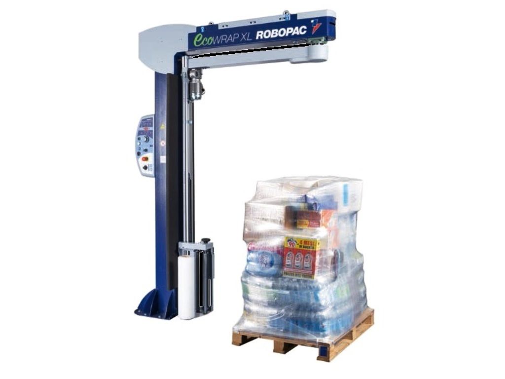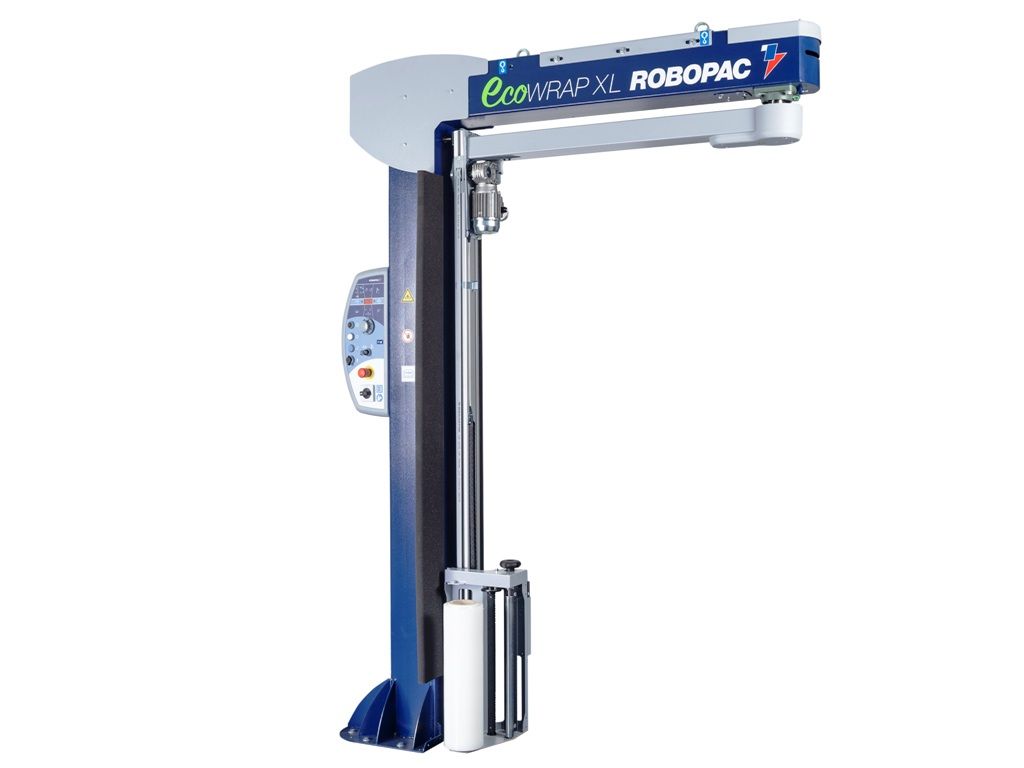 Паллетообмотчик с поворотным кронштейном Ecowrap Plus XL предназначен для обмотки неустойчивых поддонов или поддонов неправильной формы